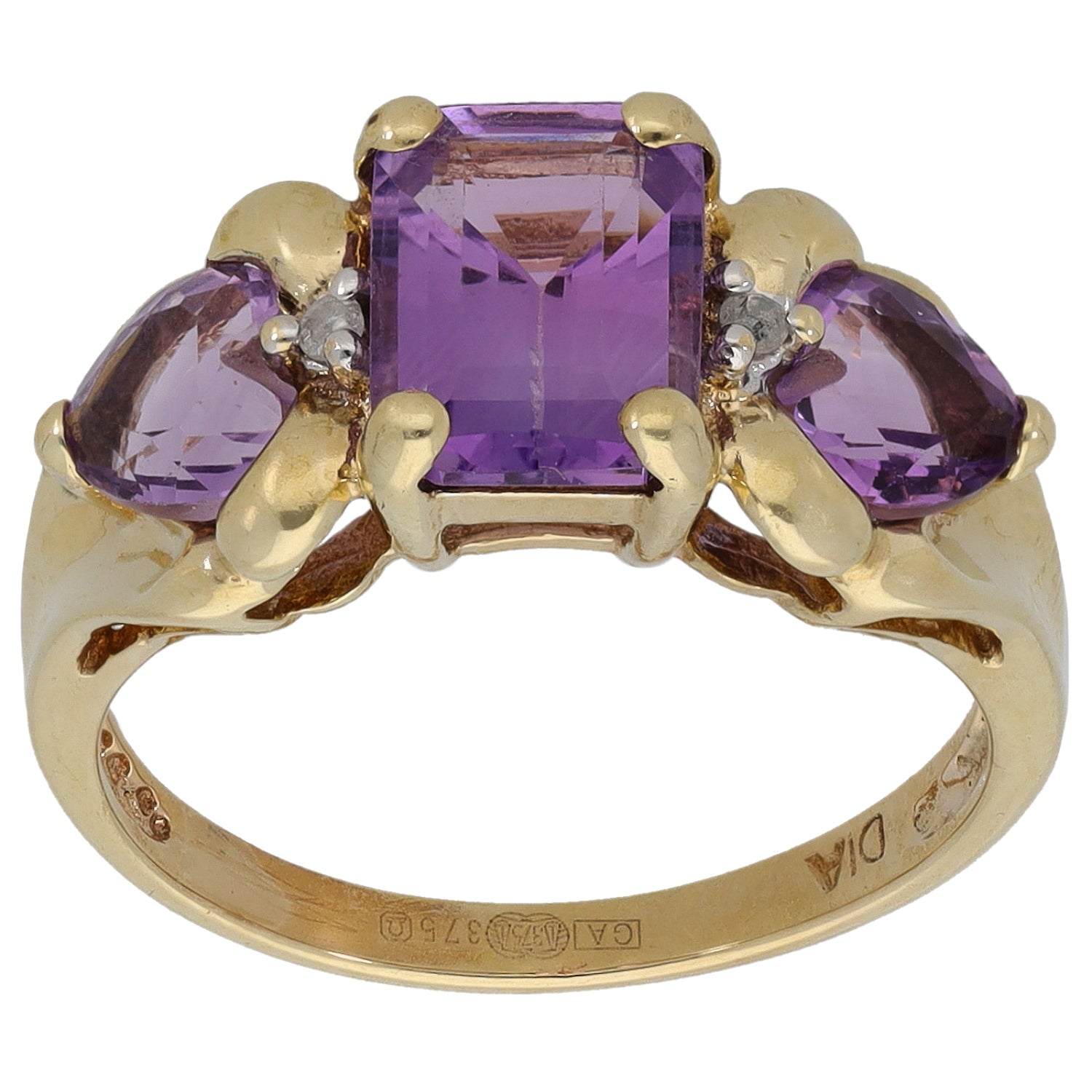 9ct Gold Amethyst & 0.02ct Diamond Dress/Cocktail Ring Size M