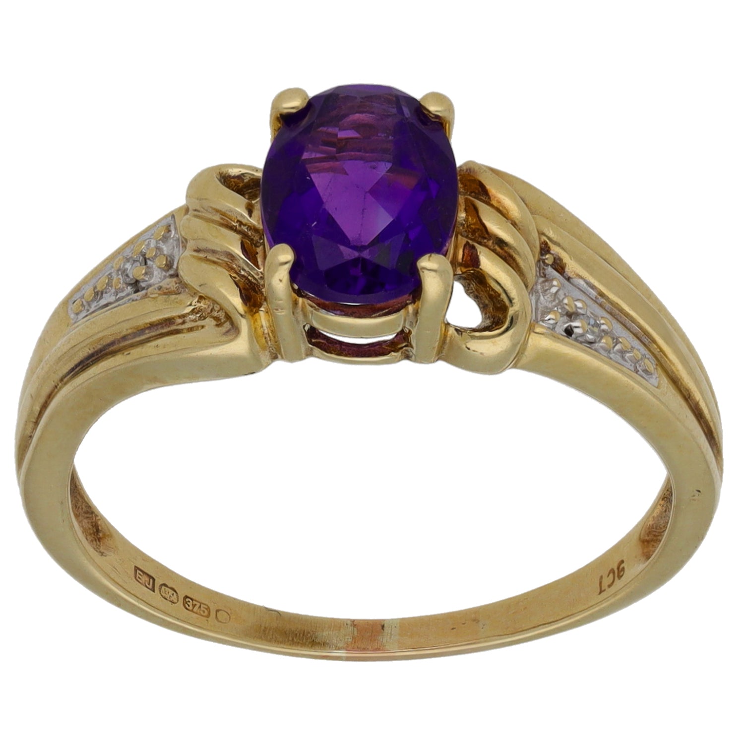 9ct Gold Amethyst & 0.01ct Diamond Dress/Cocktail Ring Size Q