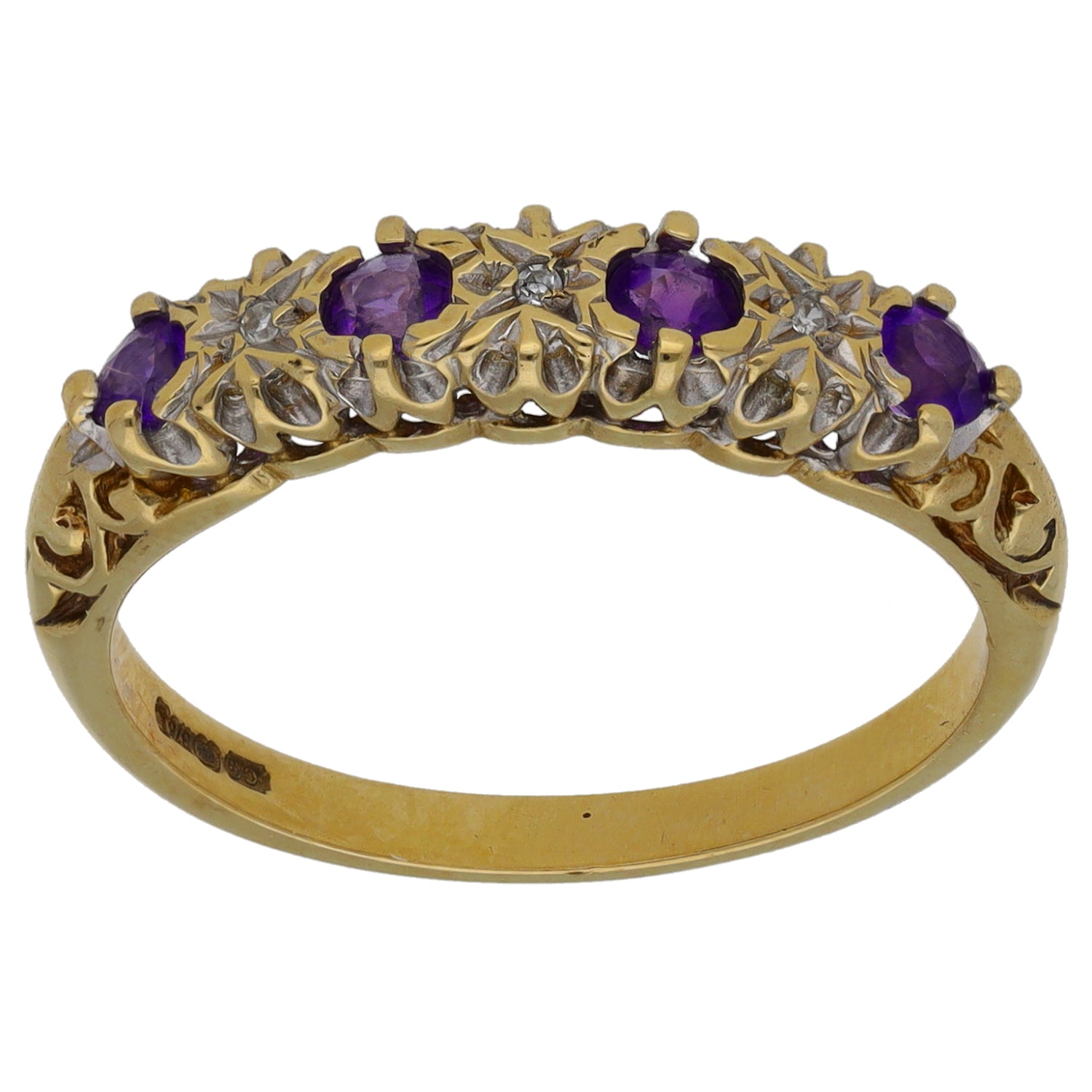 9ct Gold Amethyst & 0.015ct Diamond Half Eternity Ring Size N