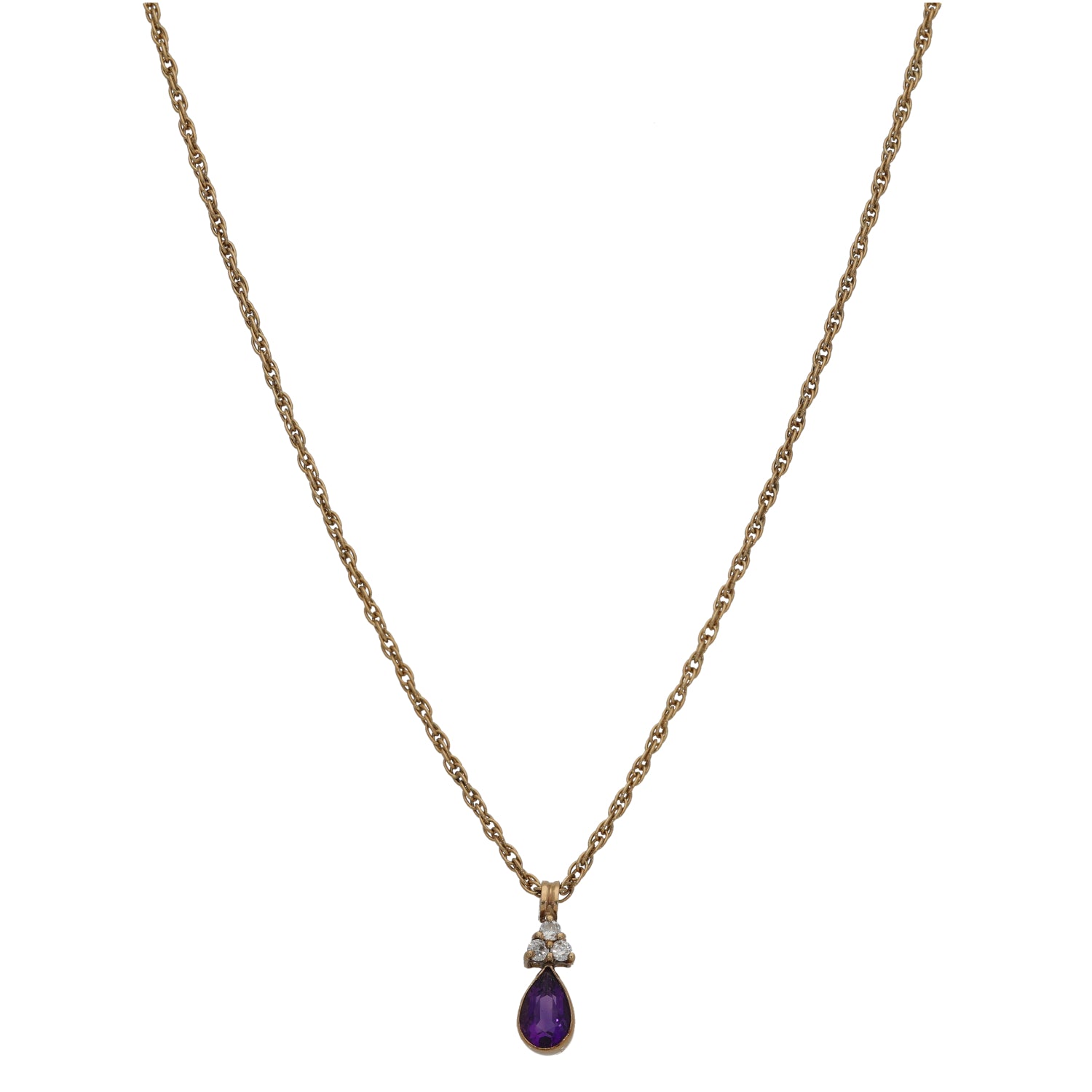 9ct Gold Amethyst & 0.09ct Diamond Dress/Cocktail Pendant With Chain