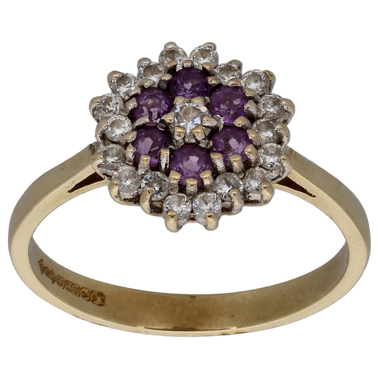 9ct Gold Amethyst & Cubic Zirconia Dress/Cocktail Ring Size M