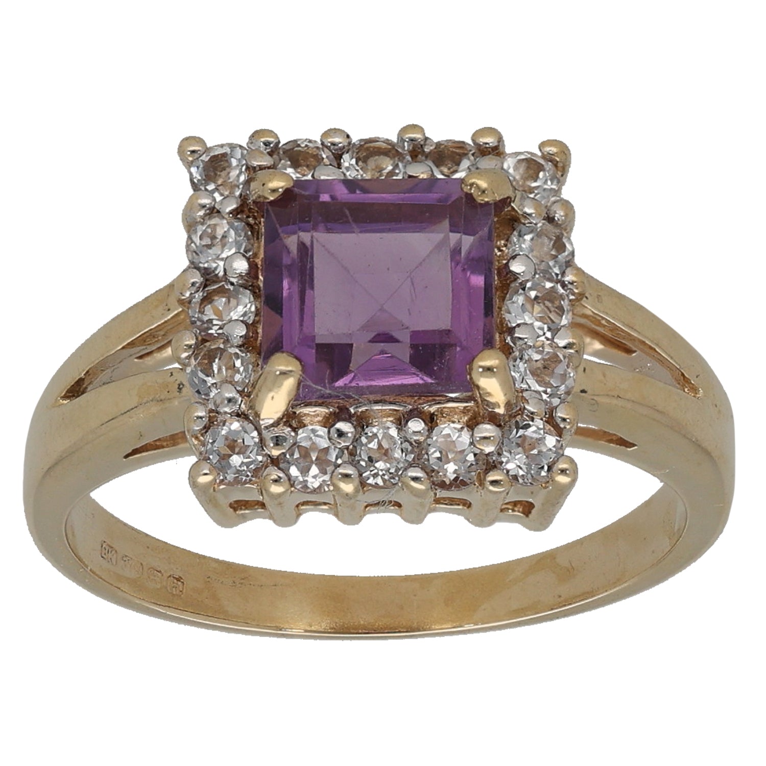 9ct Gold Amethyst & Imitation Dress/Cocktail Ring Size K