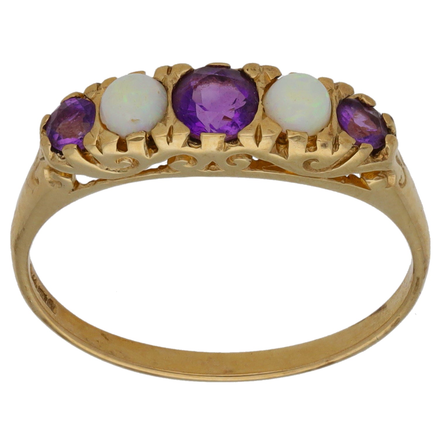 9ct Gold Amethyst & Opal Half Eternity Ring Size R