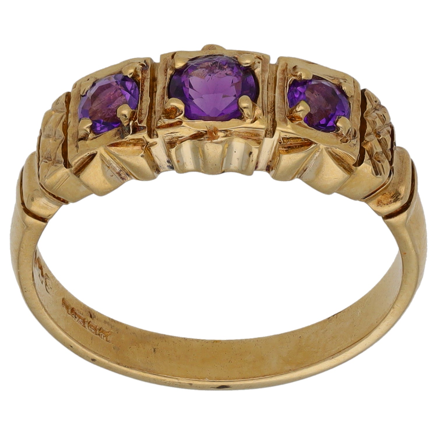 9ct Gold Amethyst Three Stone Ring Size N