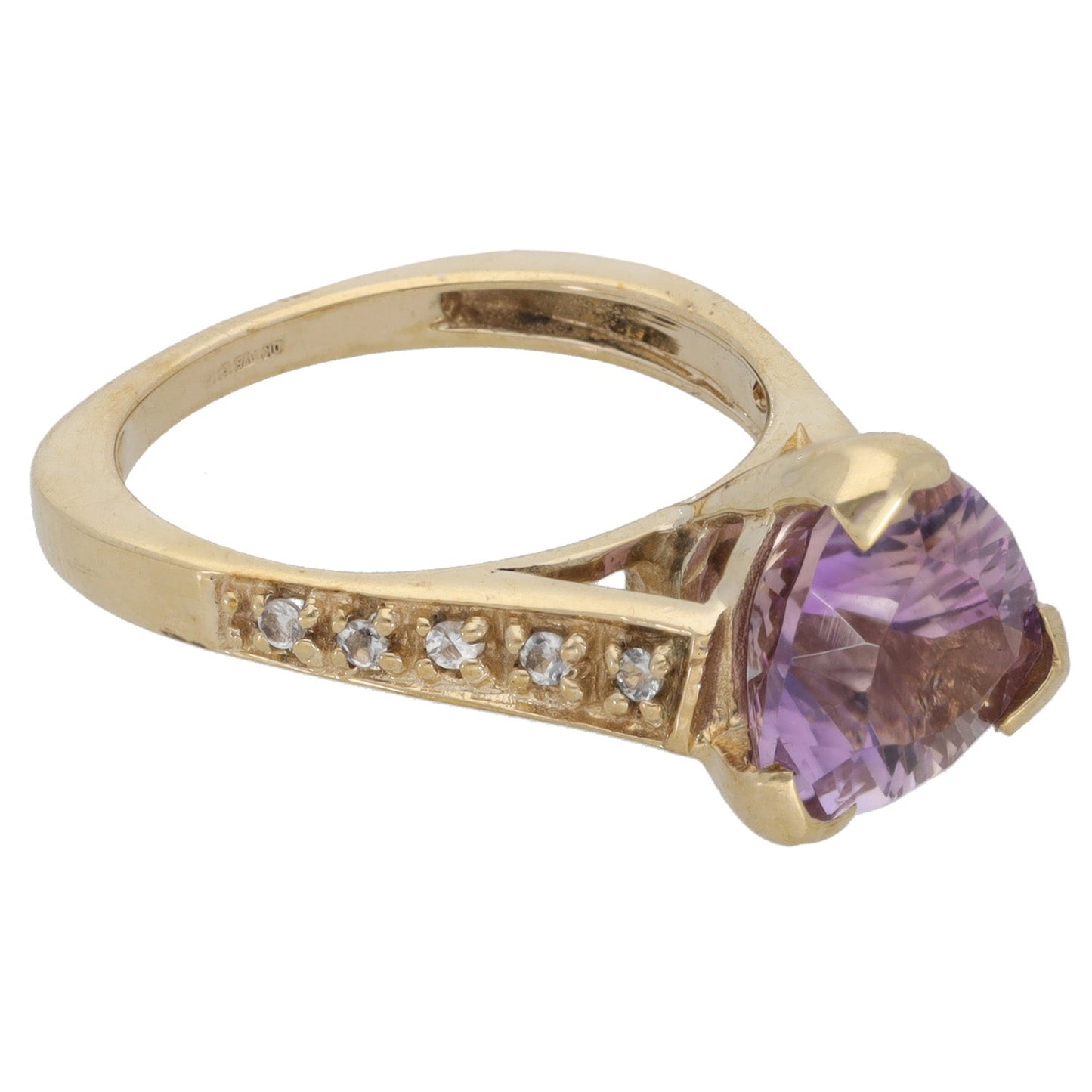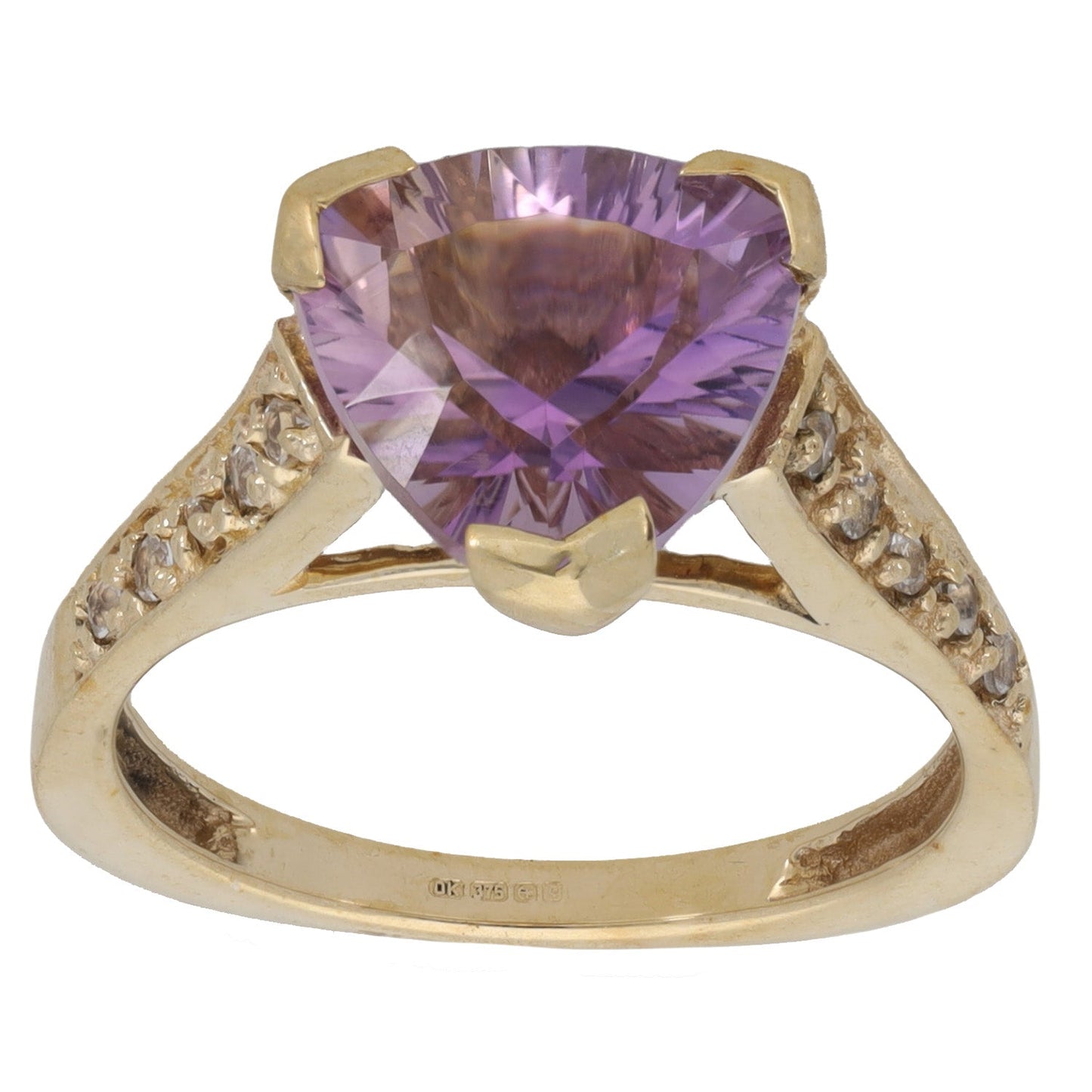 9ct Gold Amethyst & Topaz Single Stone Ring with Accent Stones Size N