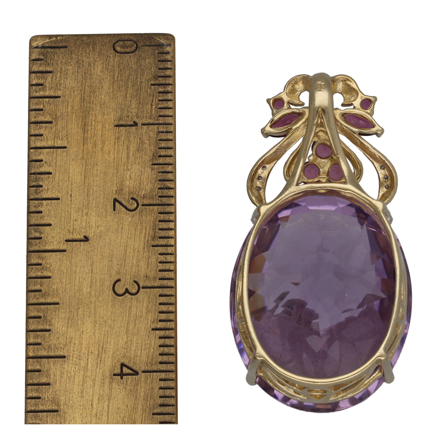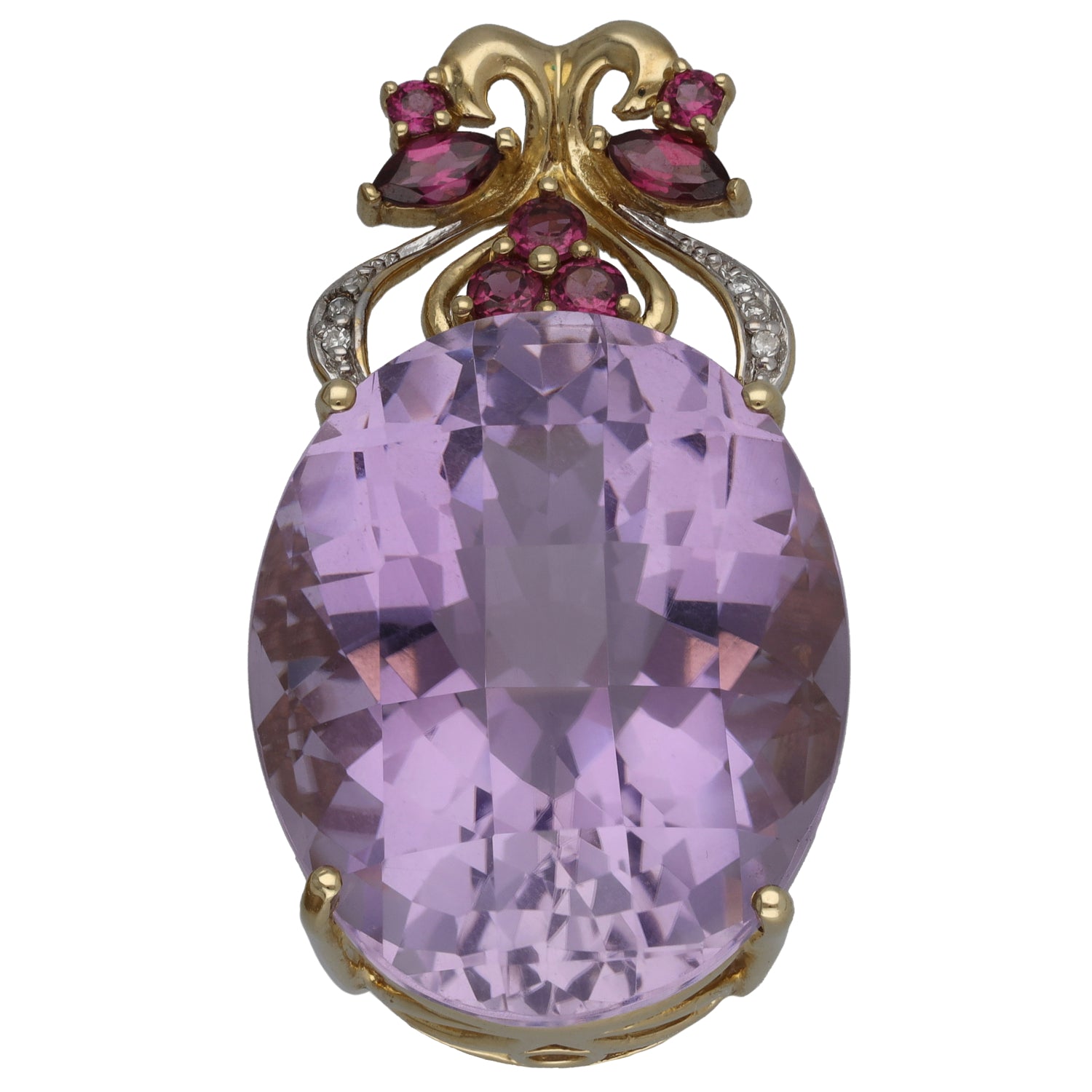 9ct Gold Amethyst & Tourmaline & 0.03ct Diamond Dress/Cocktail Pendant
