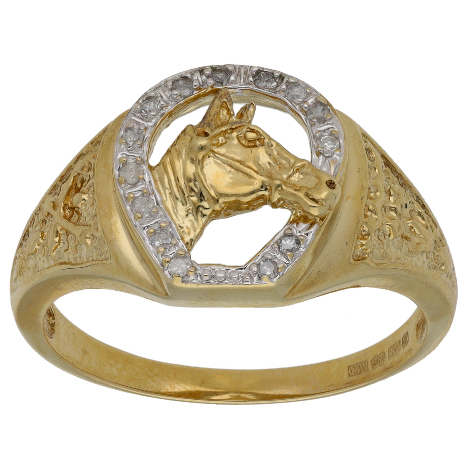 9ct Gold 0.14ct Diamond Horseshoe Ring Size Z