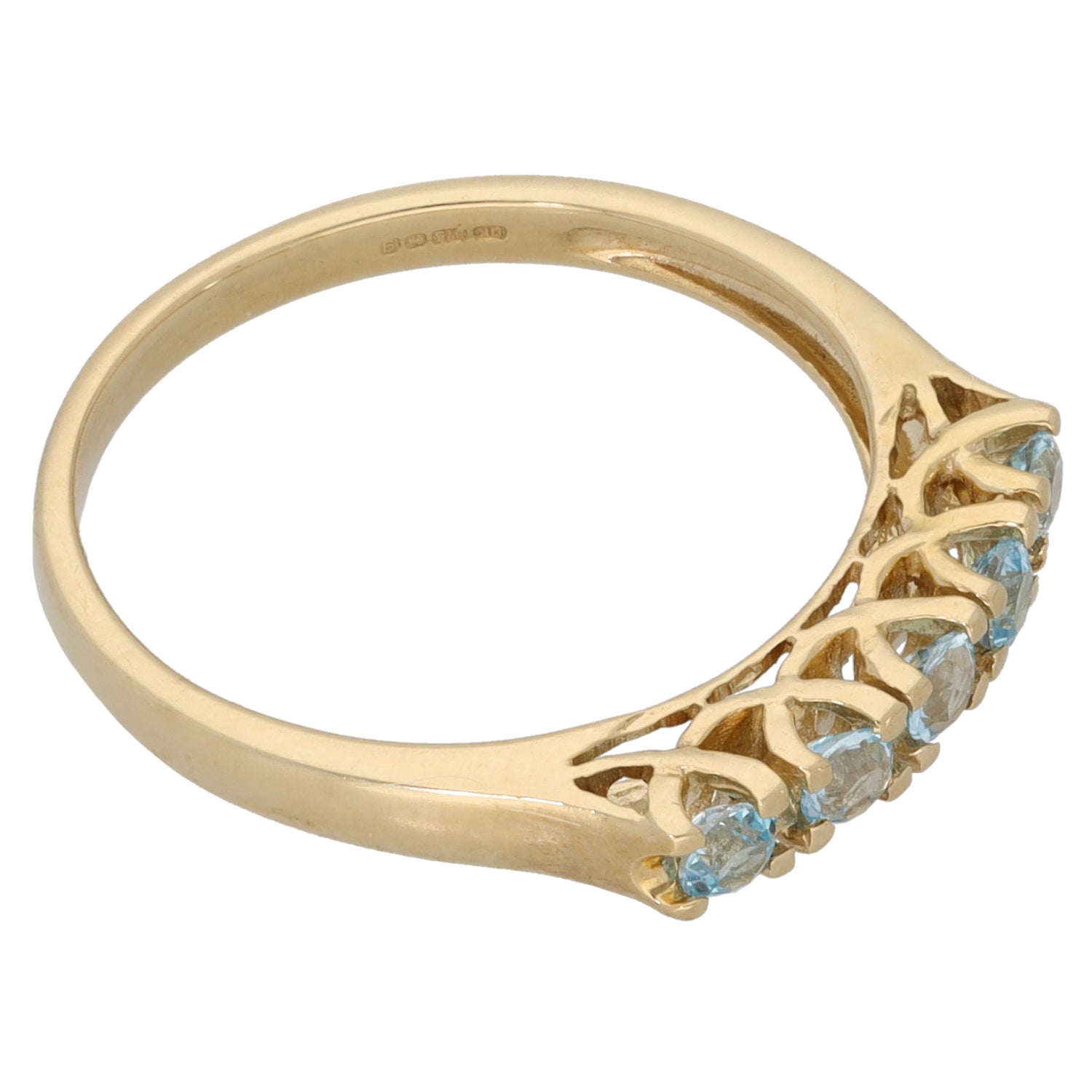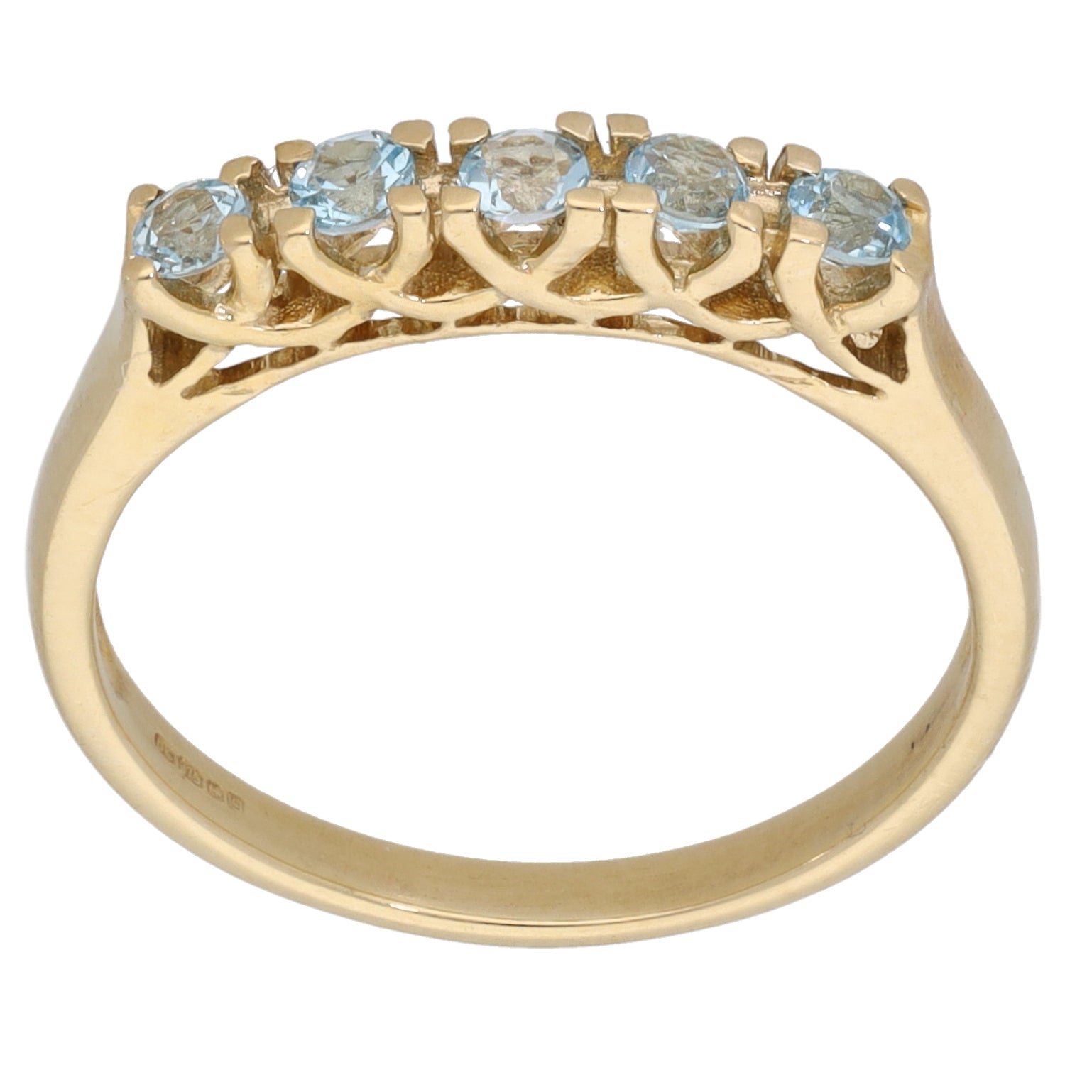 9ct Gold Aquamarine Half Eternity Ring Size N