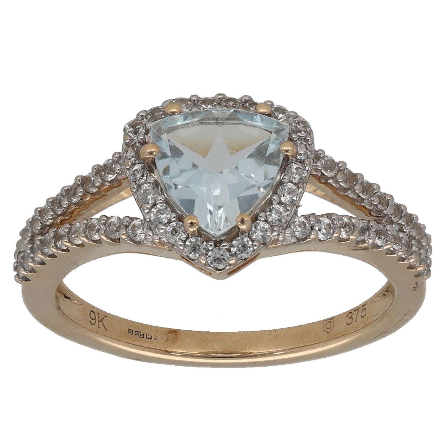 9ct Gold Aquamarine & Imitation Dress/Cocktail Ring Size N