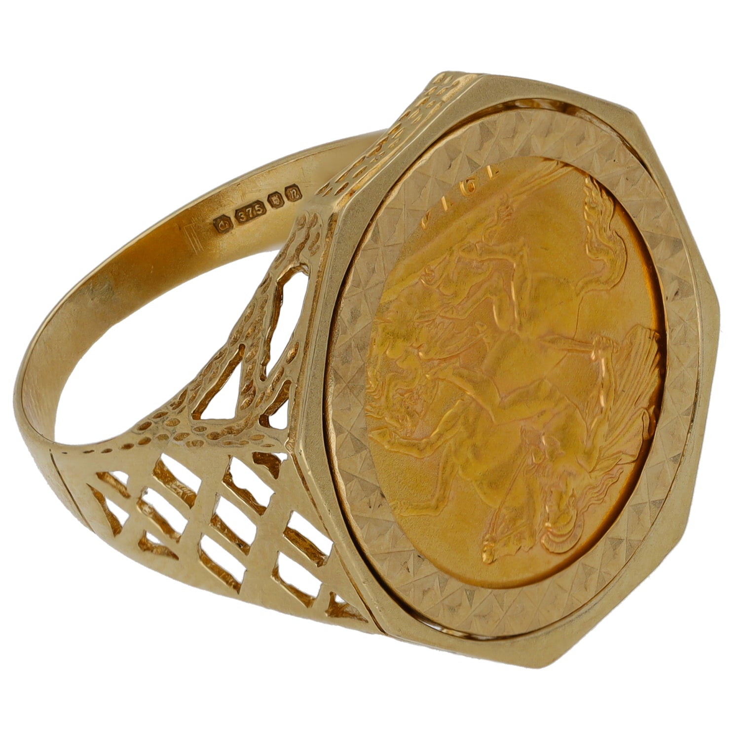 9ct Gold Half Sovereign Coin Ring Size T