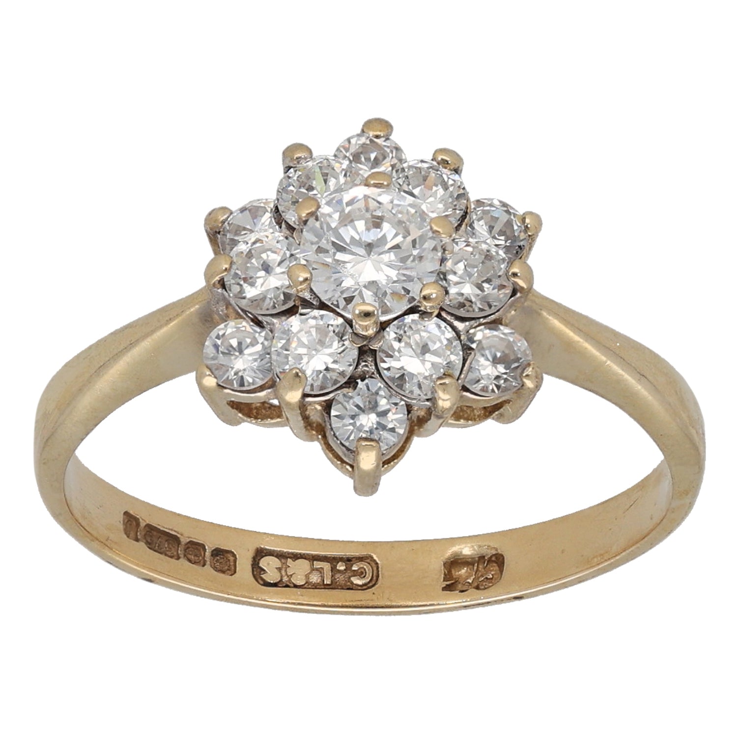 9ct Gold Cubic Zirconia Cluster Ring Size N