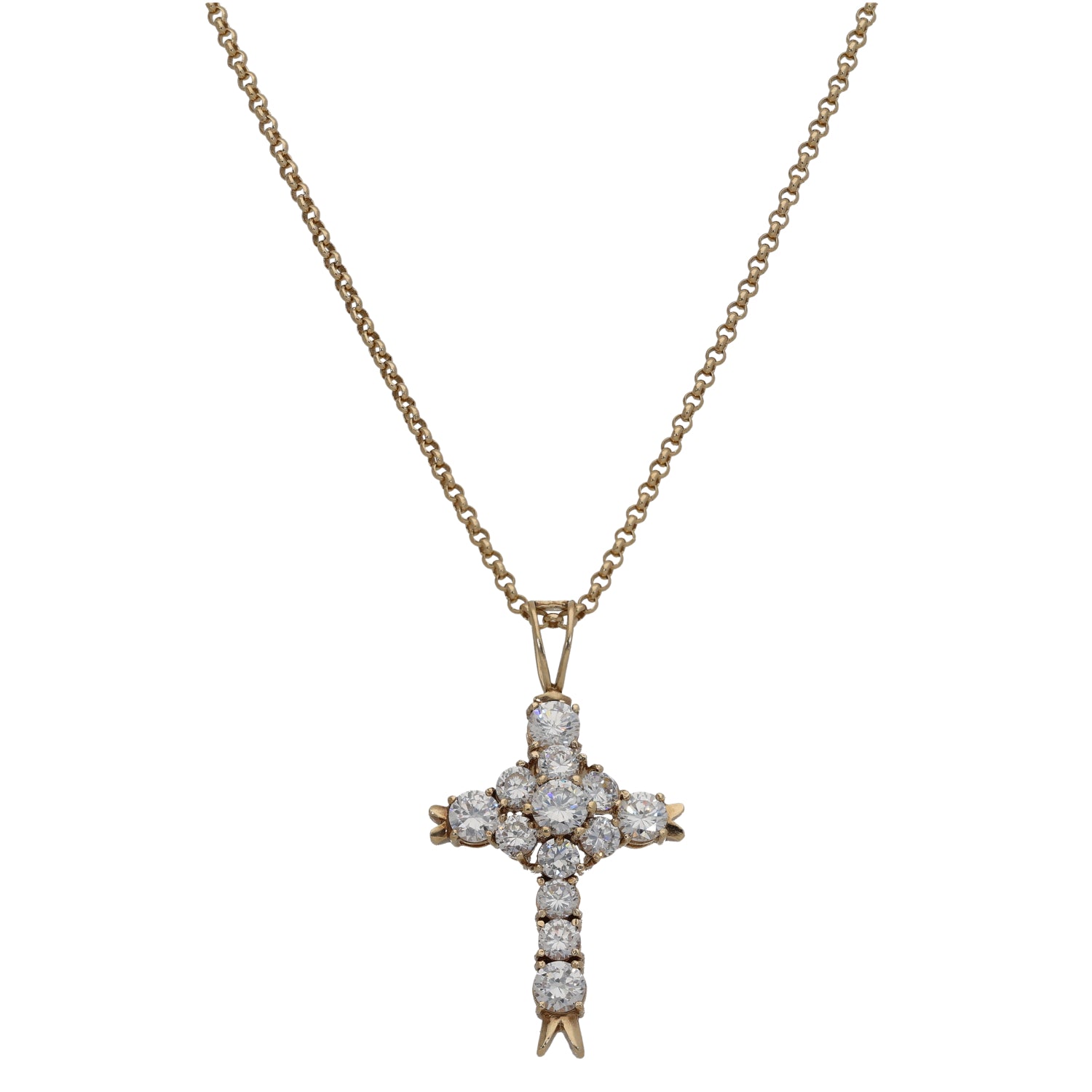 9ct Gold Cubic Zirconia Cross Pendant With Chain