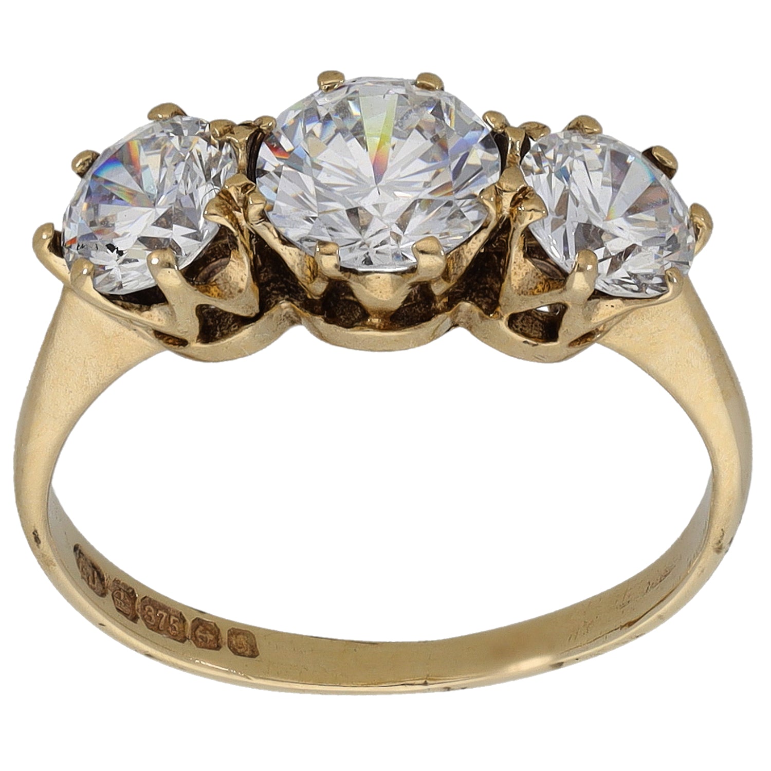 9ct Gold Cubic Zirconia Trilogy Ring Size K