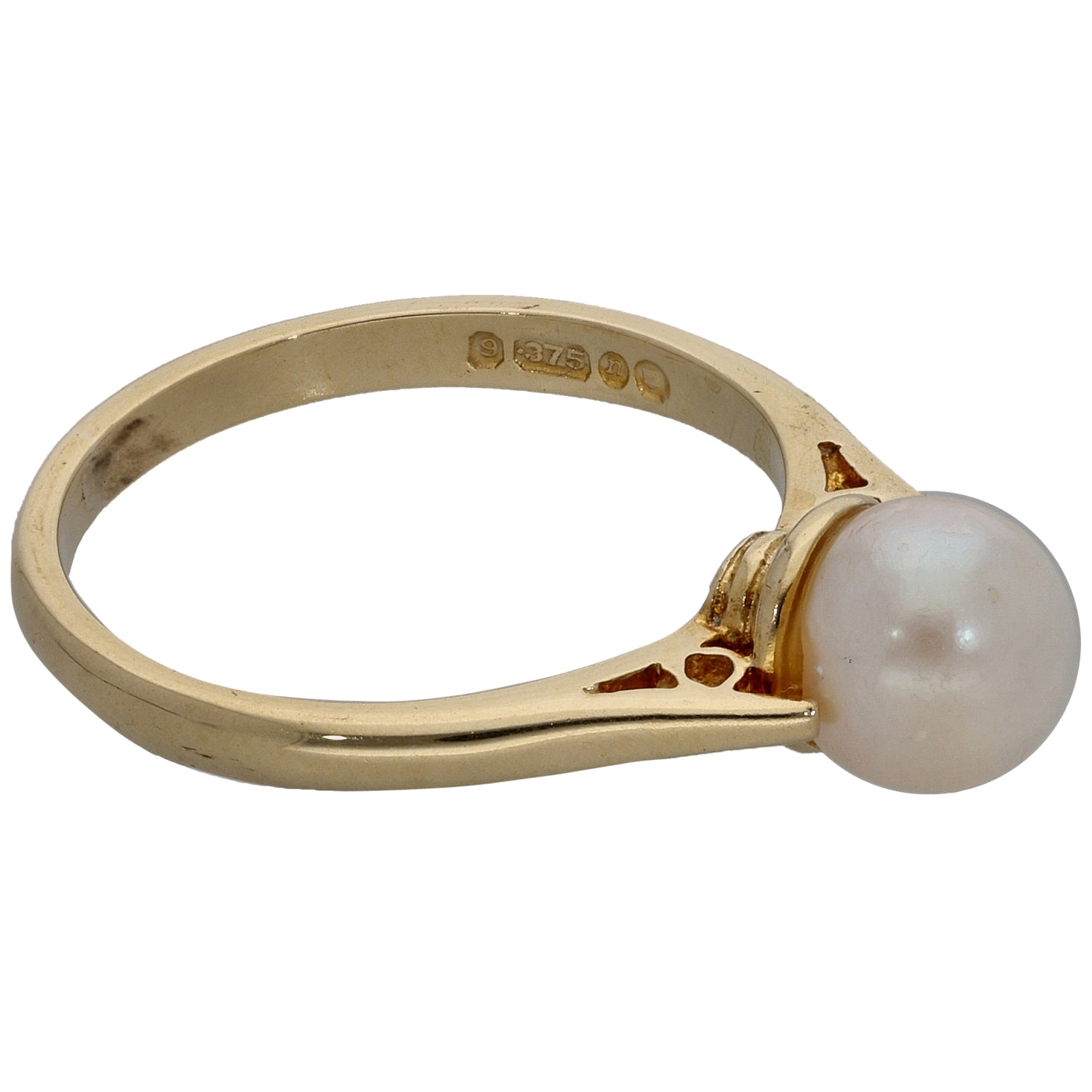 9ct Gold Cultured Pearl Single Stone Ring Size L