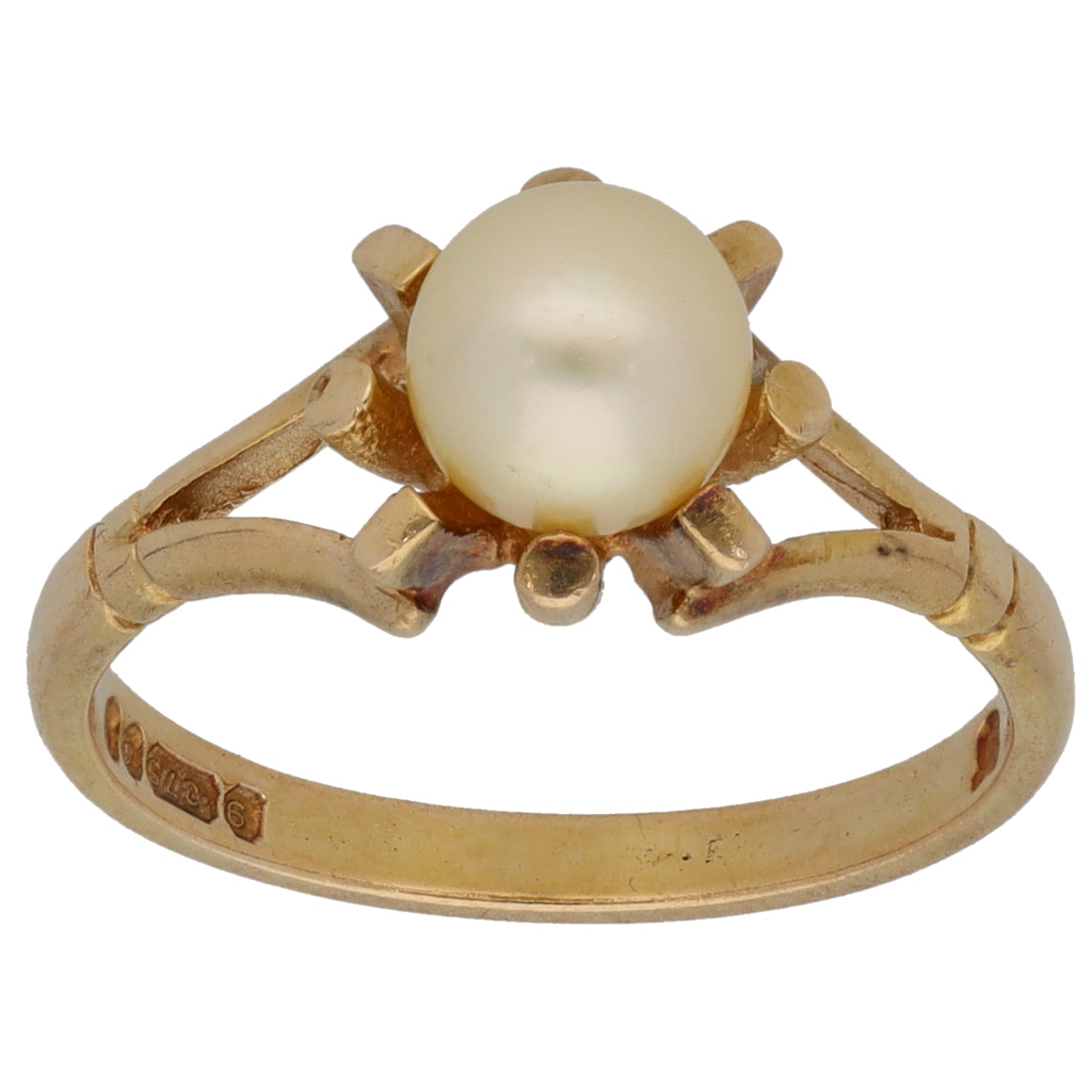 9ct Gold Cultured Pearl Single Stone Ring Size M