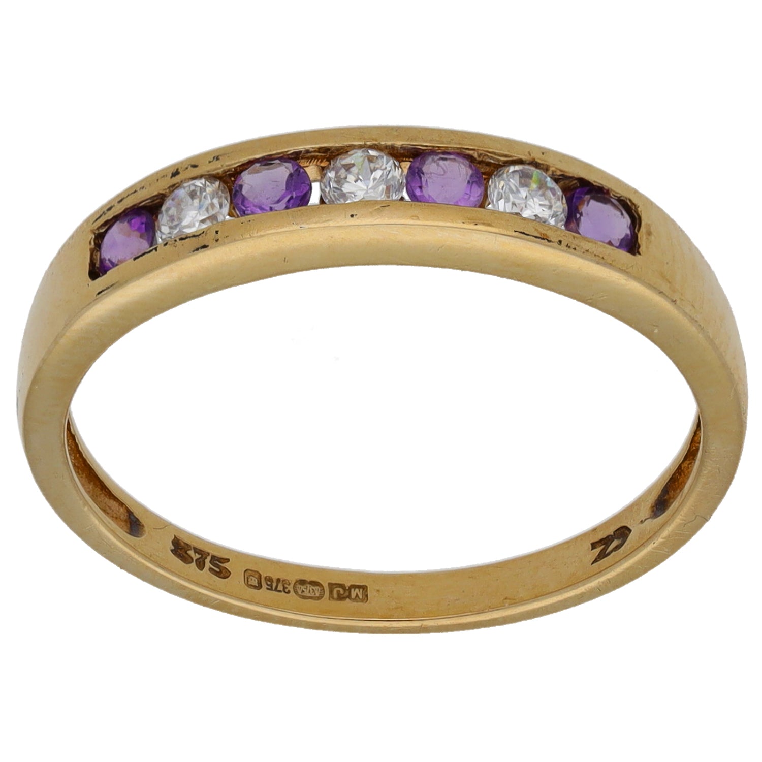 9ct Gold Cubic Zirconia & Amethyst Half Eternity Ring Size N