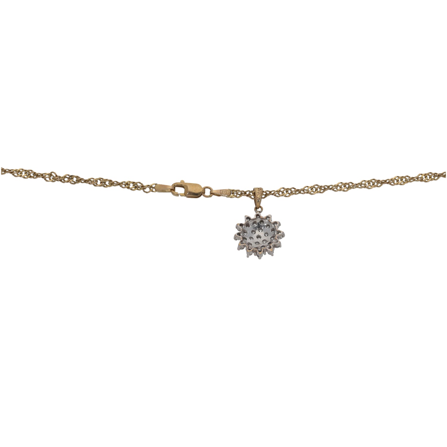 9ct Gold Cubic Zirconia Cluster Pendant With Chain