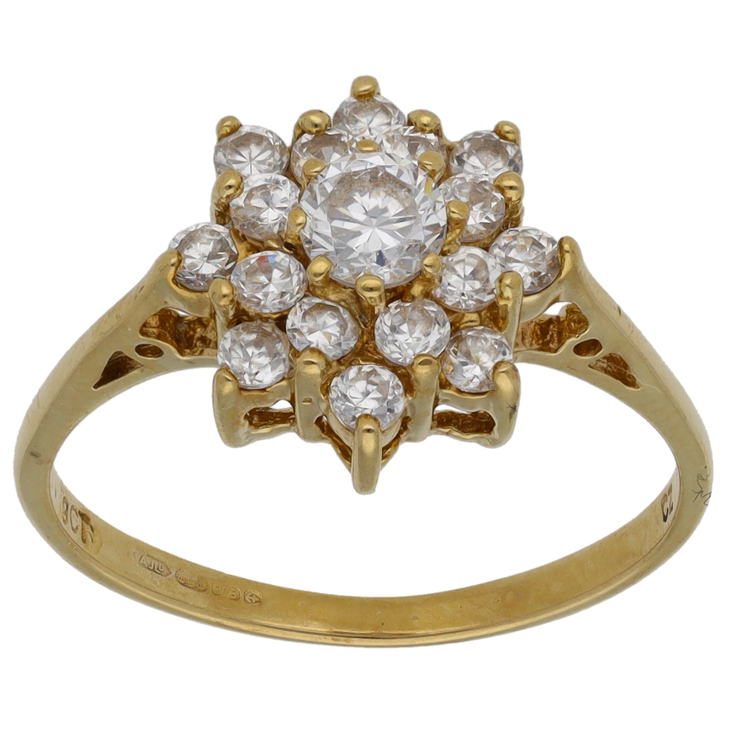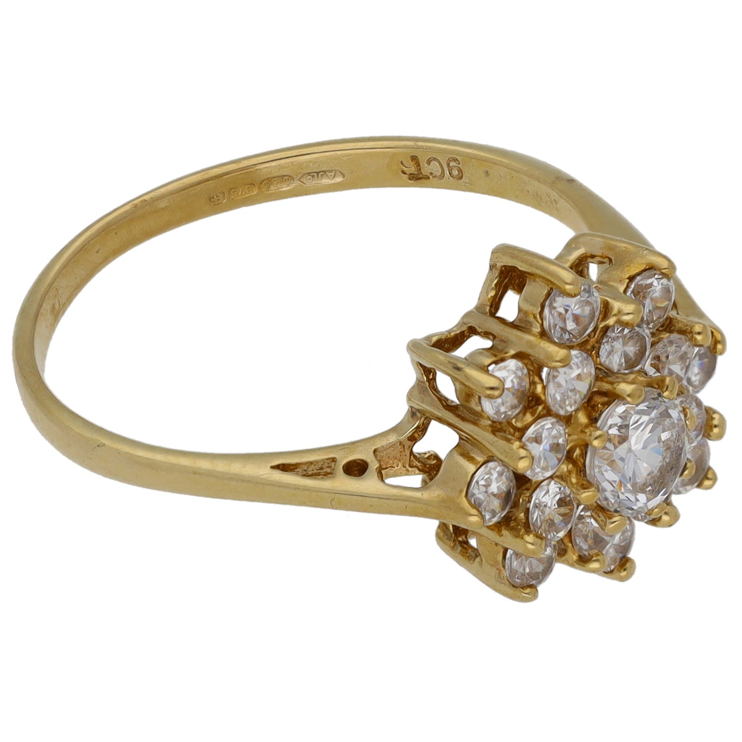 9ct Gold Cubic Zirconia Cluster Ring Size N