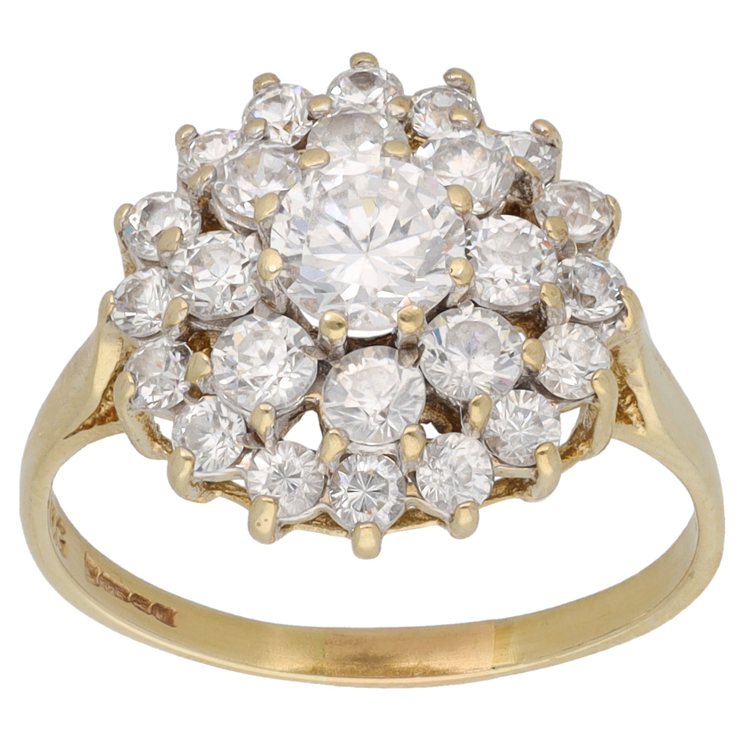 9ct Gold Cubic Zirconia Cluster Ring Size N