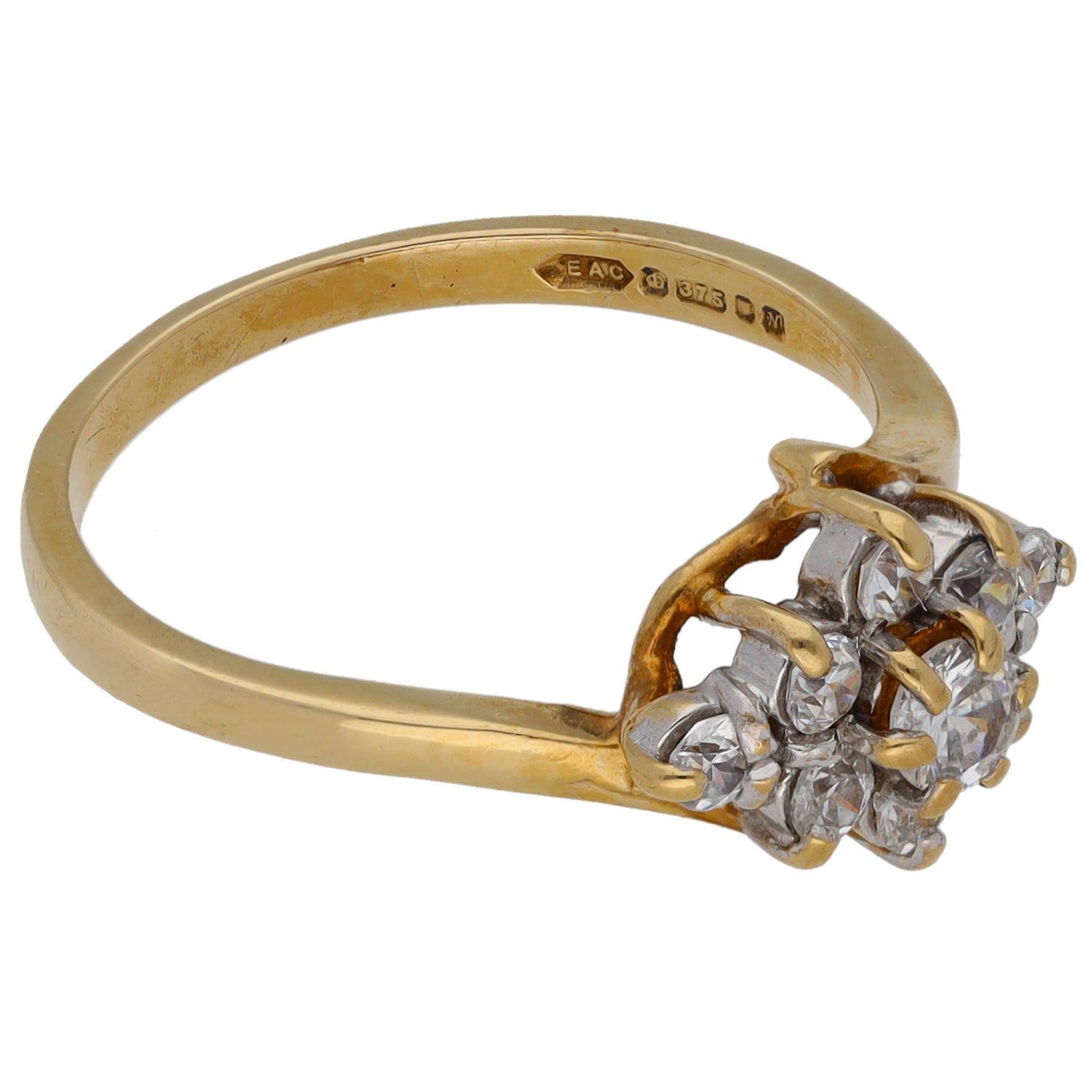 9ct Gold Cubic Zirconia Cluster Ring Size O