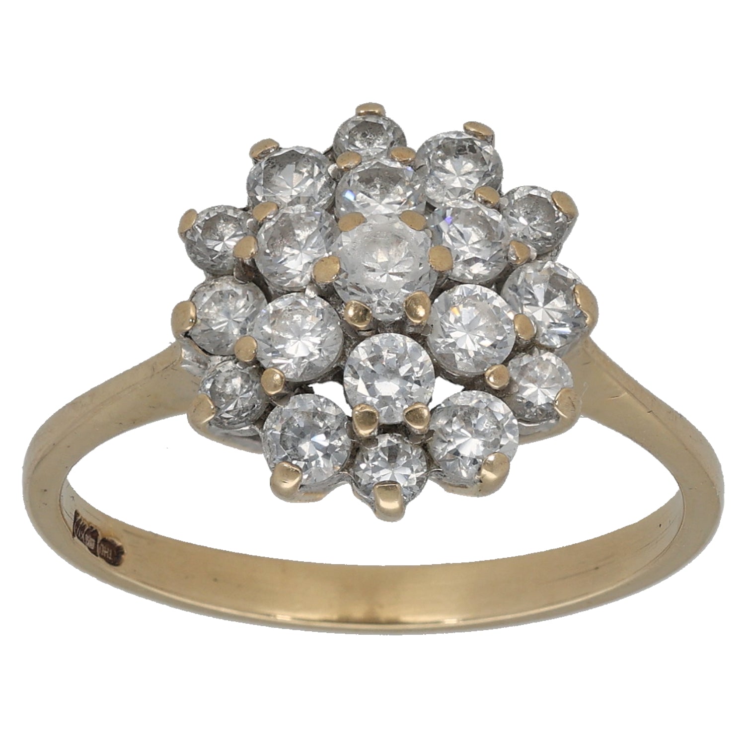 9ct Gold Cubic Zirconia Cluster Ring Size S