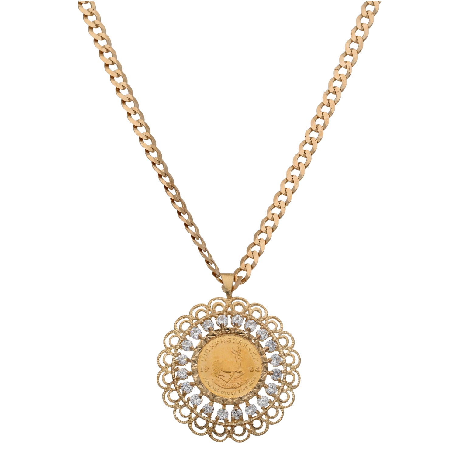 9ct Gold Cubic Zirconia Coin Pendant With Chain