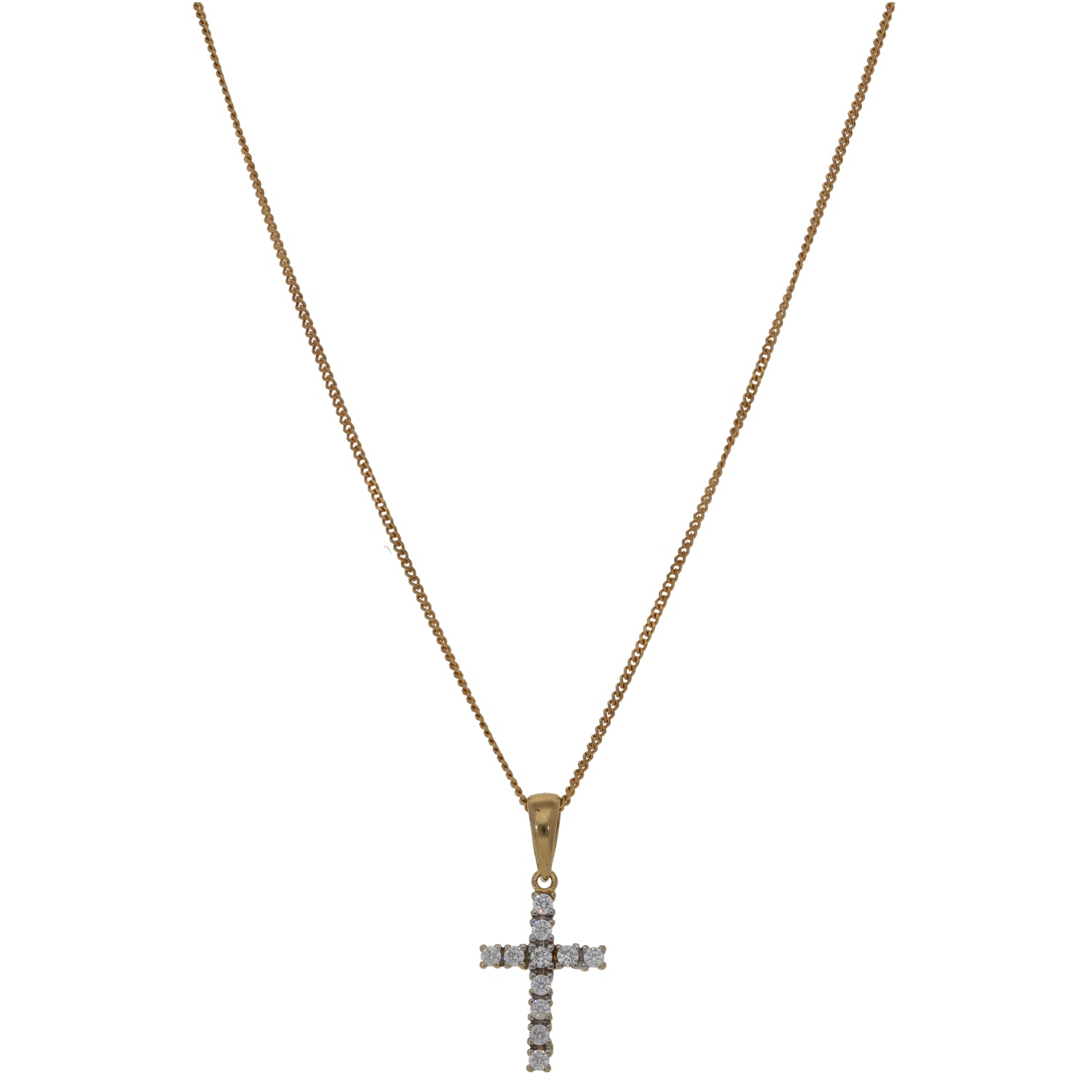 9ct Gold Cubic Zirconia Cross Pendant With Chain