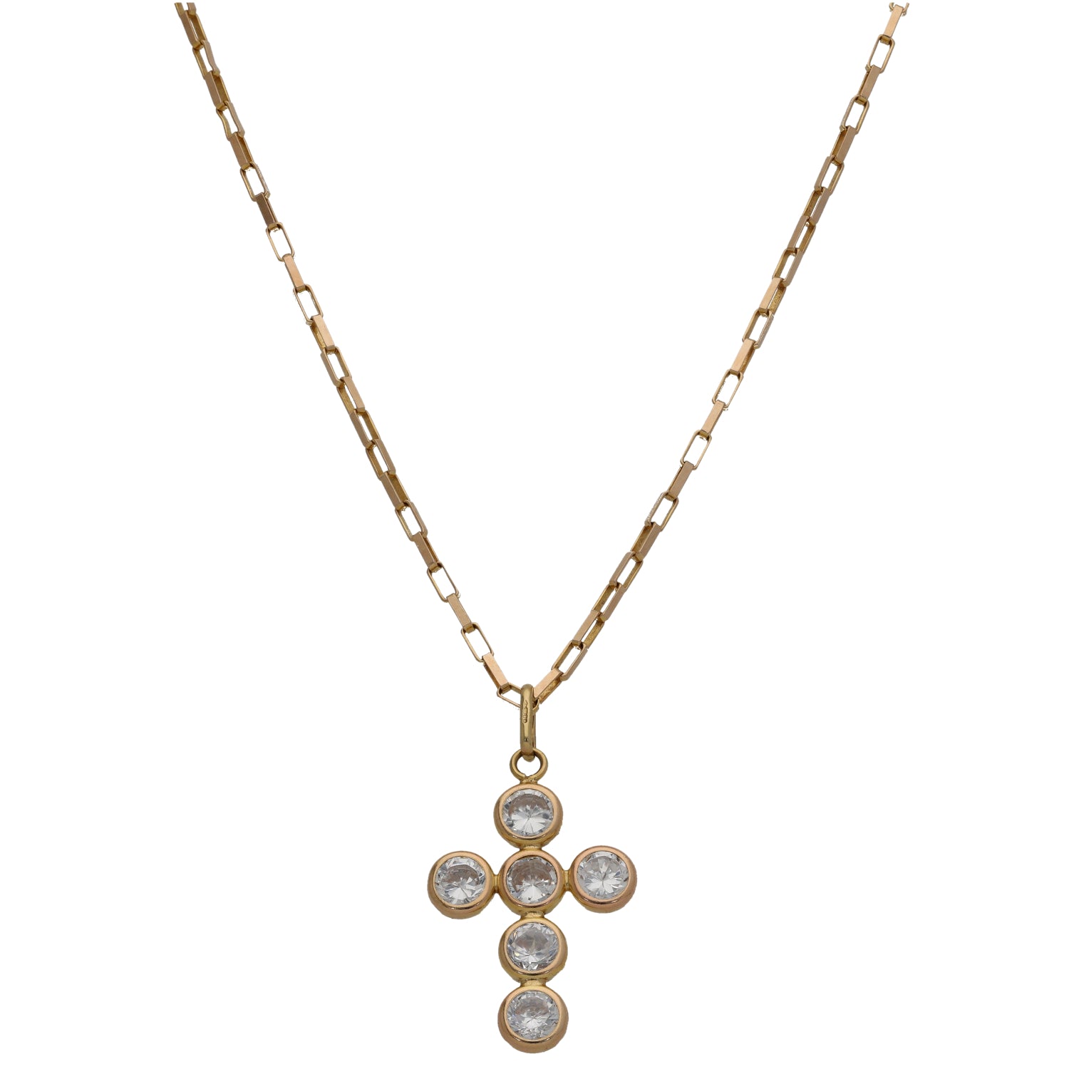 9ct Gold Cubic Zirconia Cross Pendant With Chain