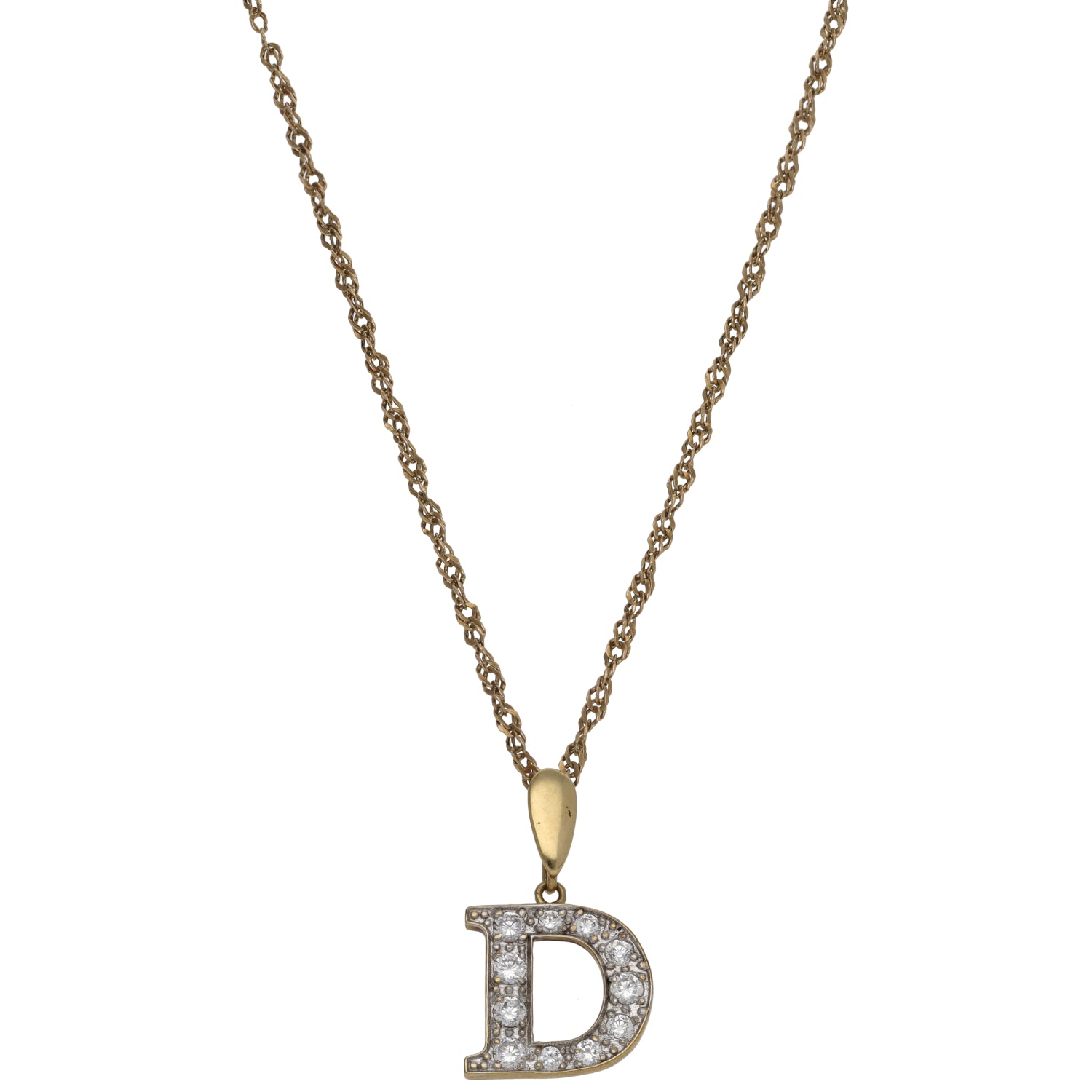 9ct Gold Cubic Zirconia Initial D Pendant With Chain
