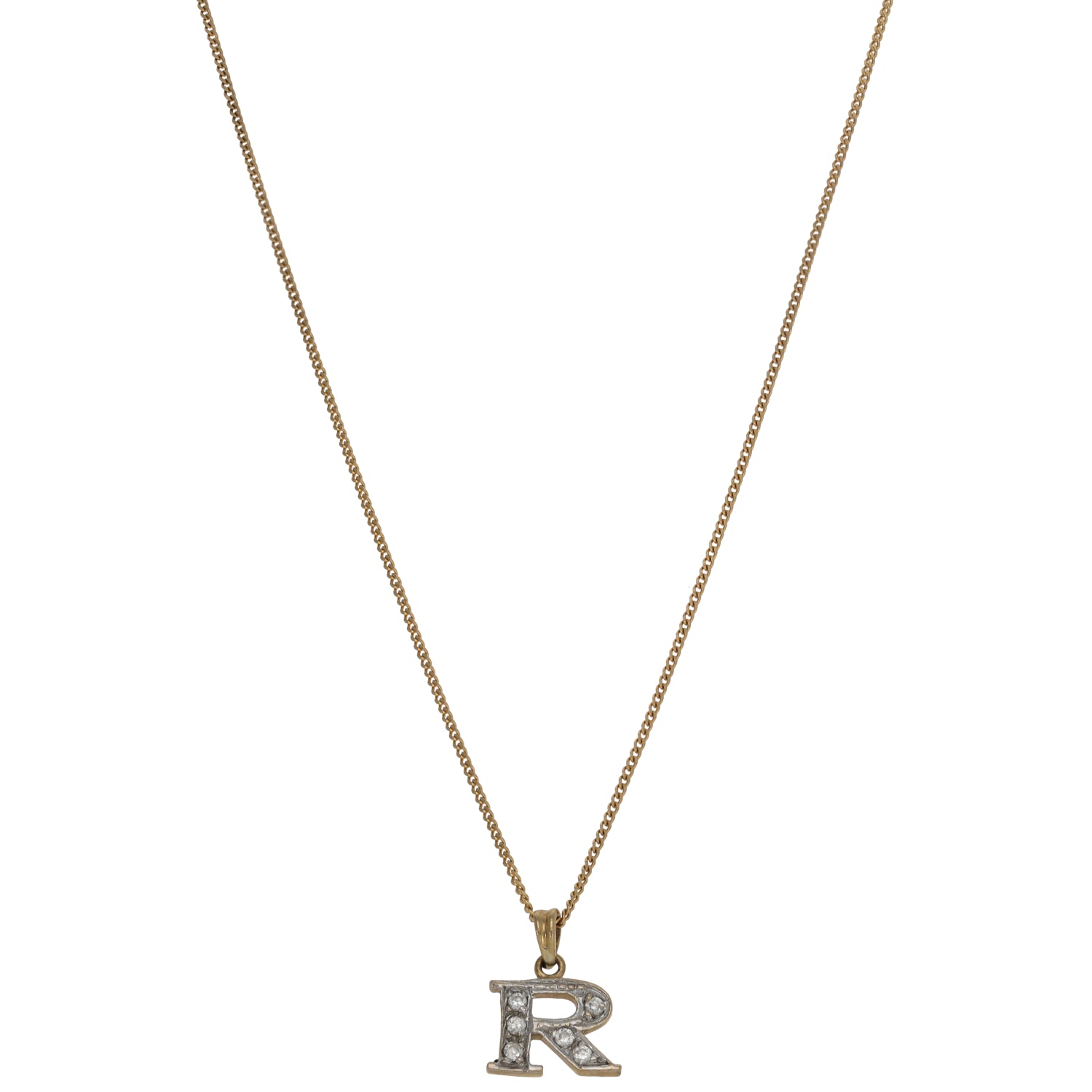 9ct Gold Cubic Zirconia Initial 'R' Pendant With Chain