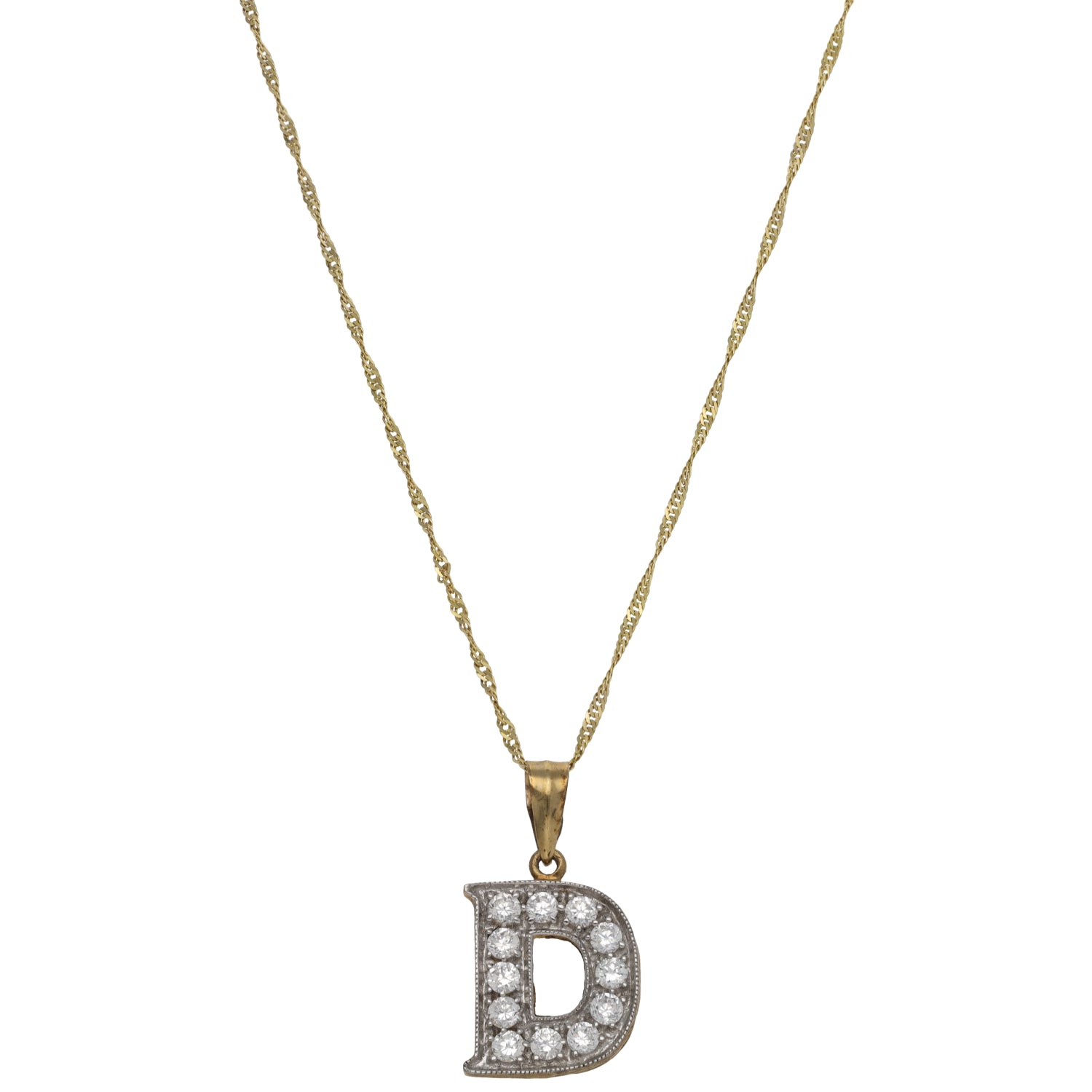 9ct Gold Cubic Zirconia Initial D Pendant With Chain