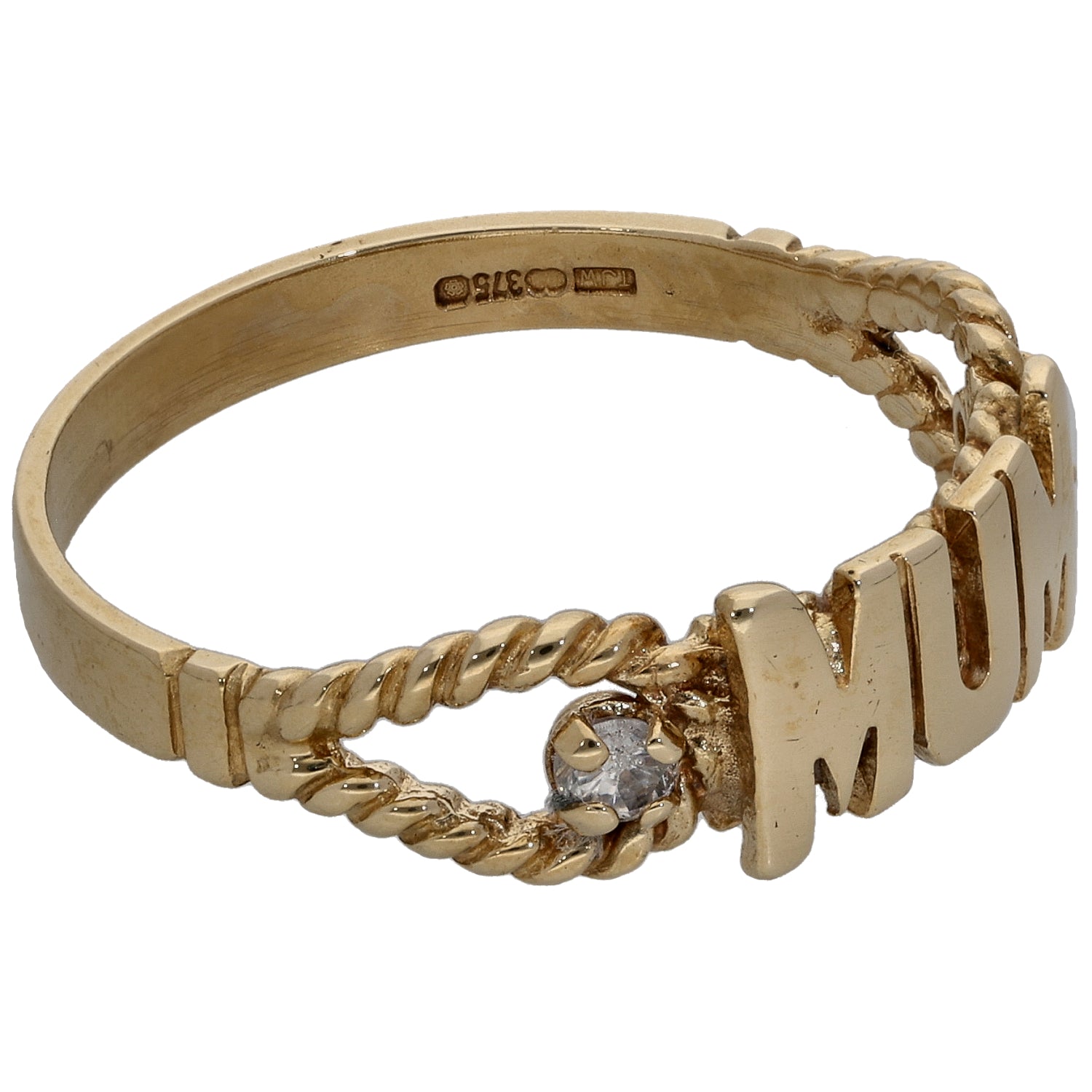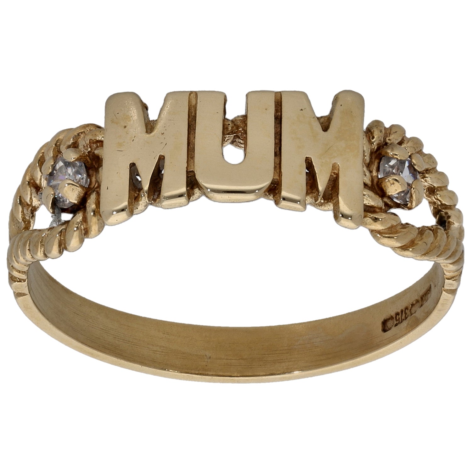 9ct Gold Cubic Zirconia Mum/Mother Ring Size S