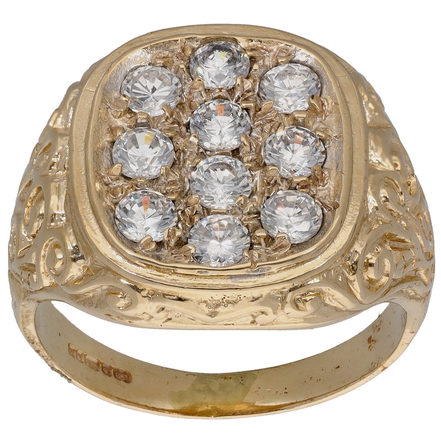 9ct Gold Cubic Zirconia Patterned Signet Ring Size T