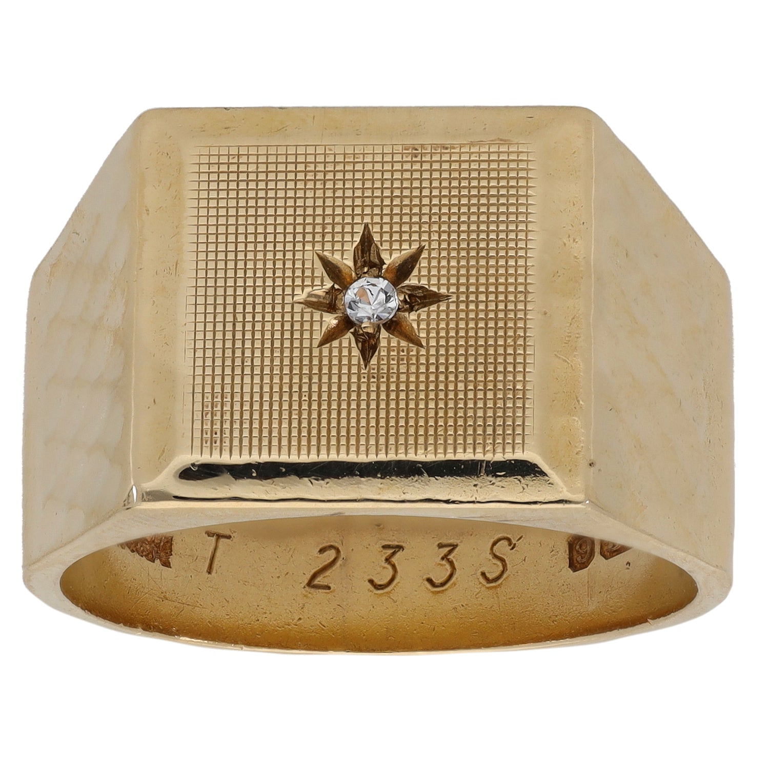 9ct Gold Cubic Zirconia Patterned Signet Ring Size T