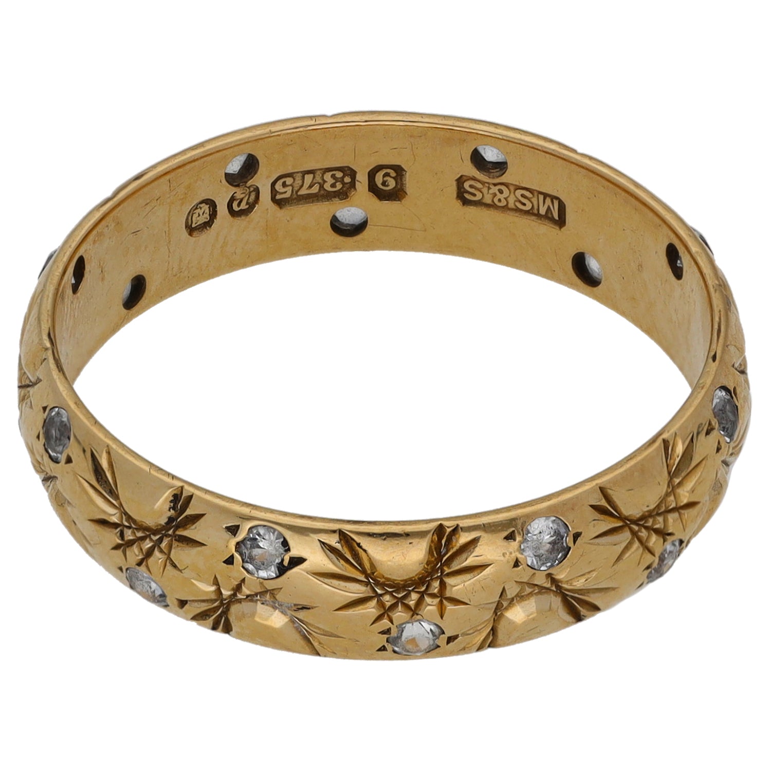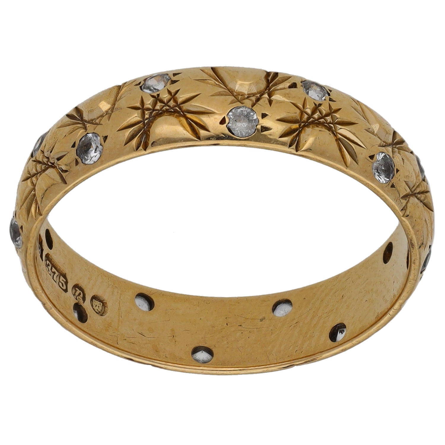 9ct Gold Cubic Zirconia Patterned Wedding Ring Size P