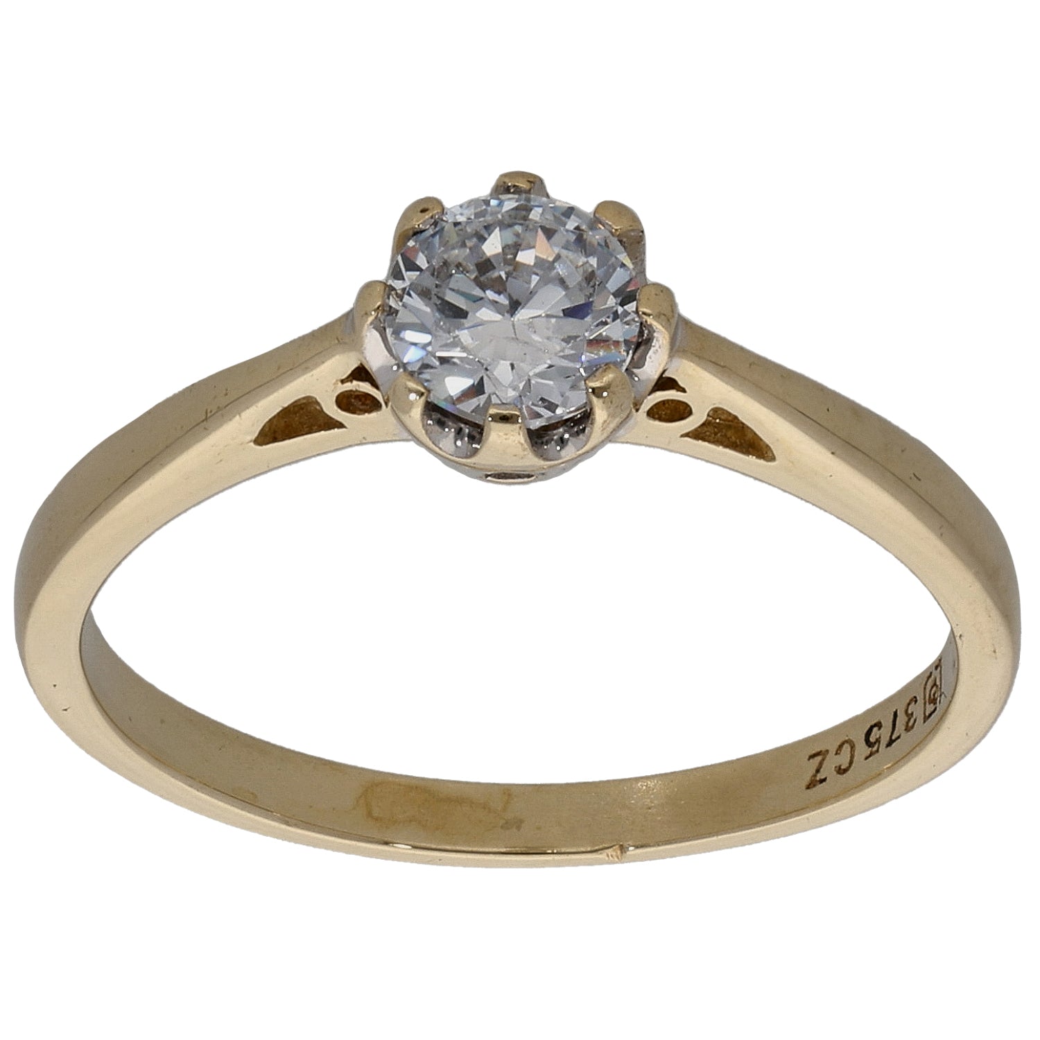 9ct Gold Cubic Zirconia Single Stone Ring Size N