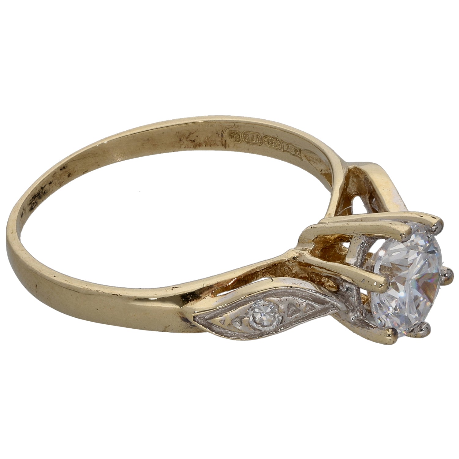 9ct Gold Cubic Zirconia Single Stone Ring with Accent Stones Size L