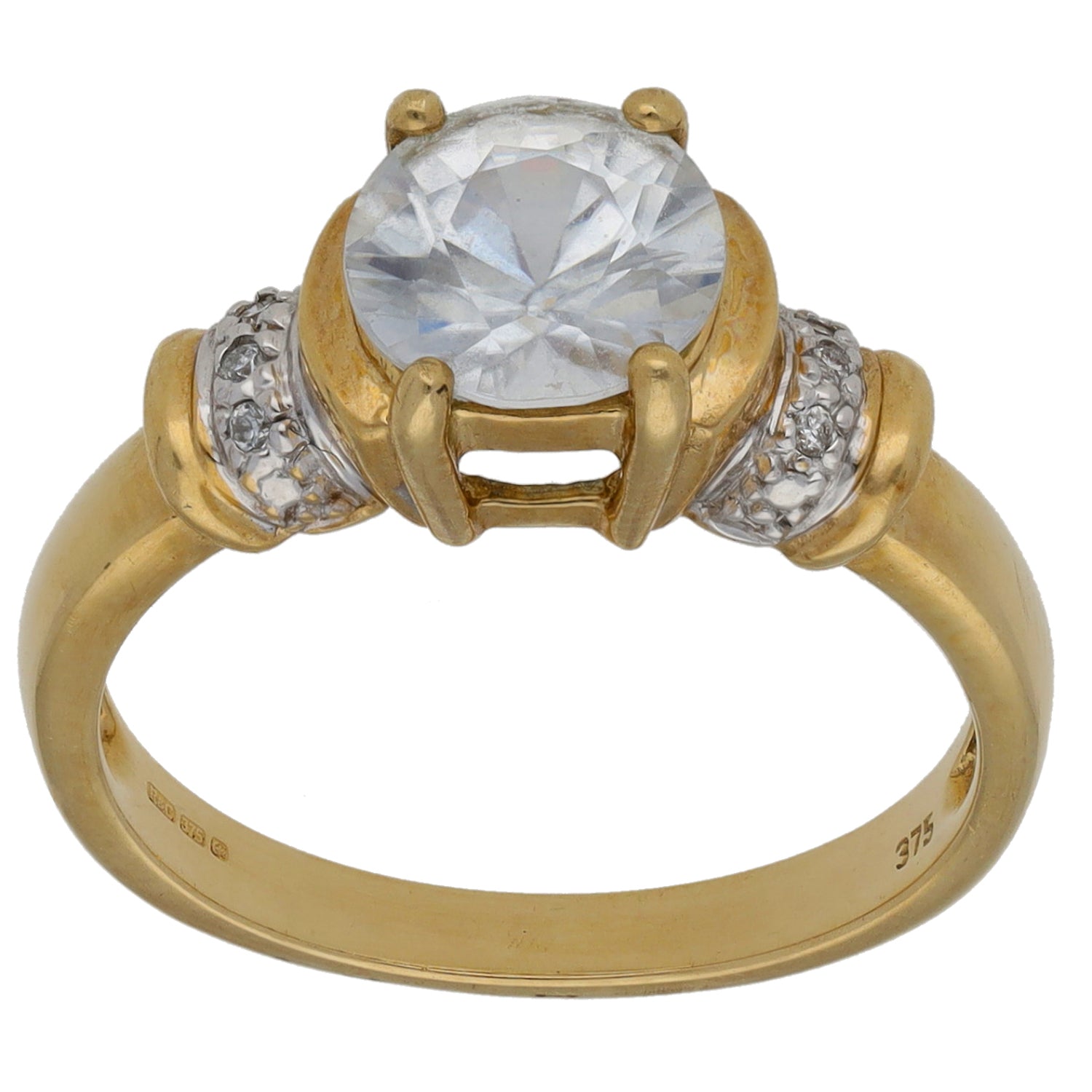9ct Gold Cubic Zirconia Single Stone Ring with Accent Stones Size N