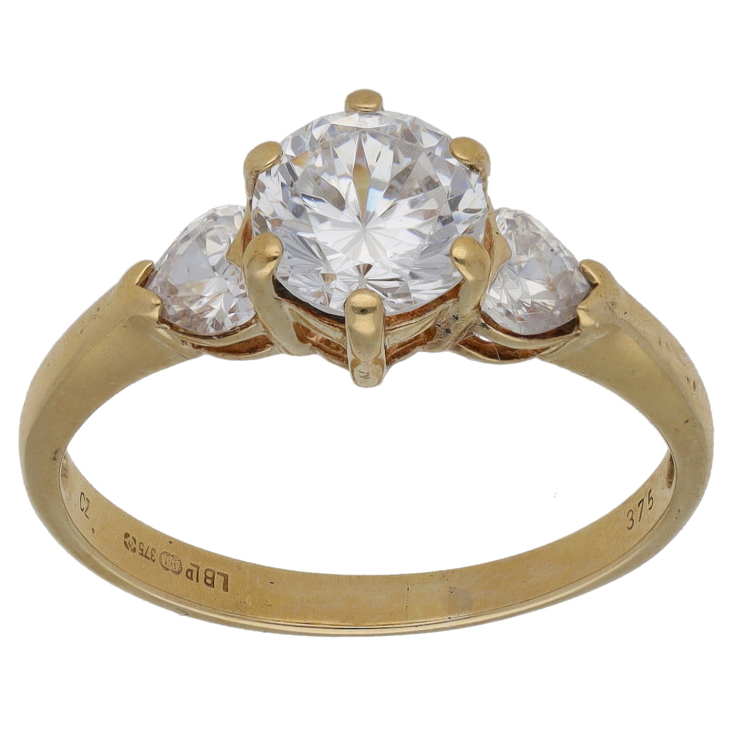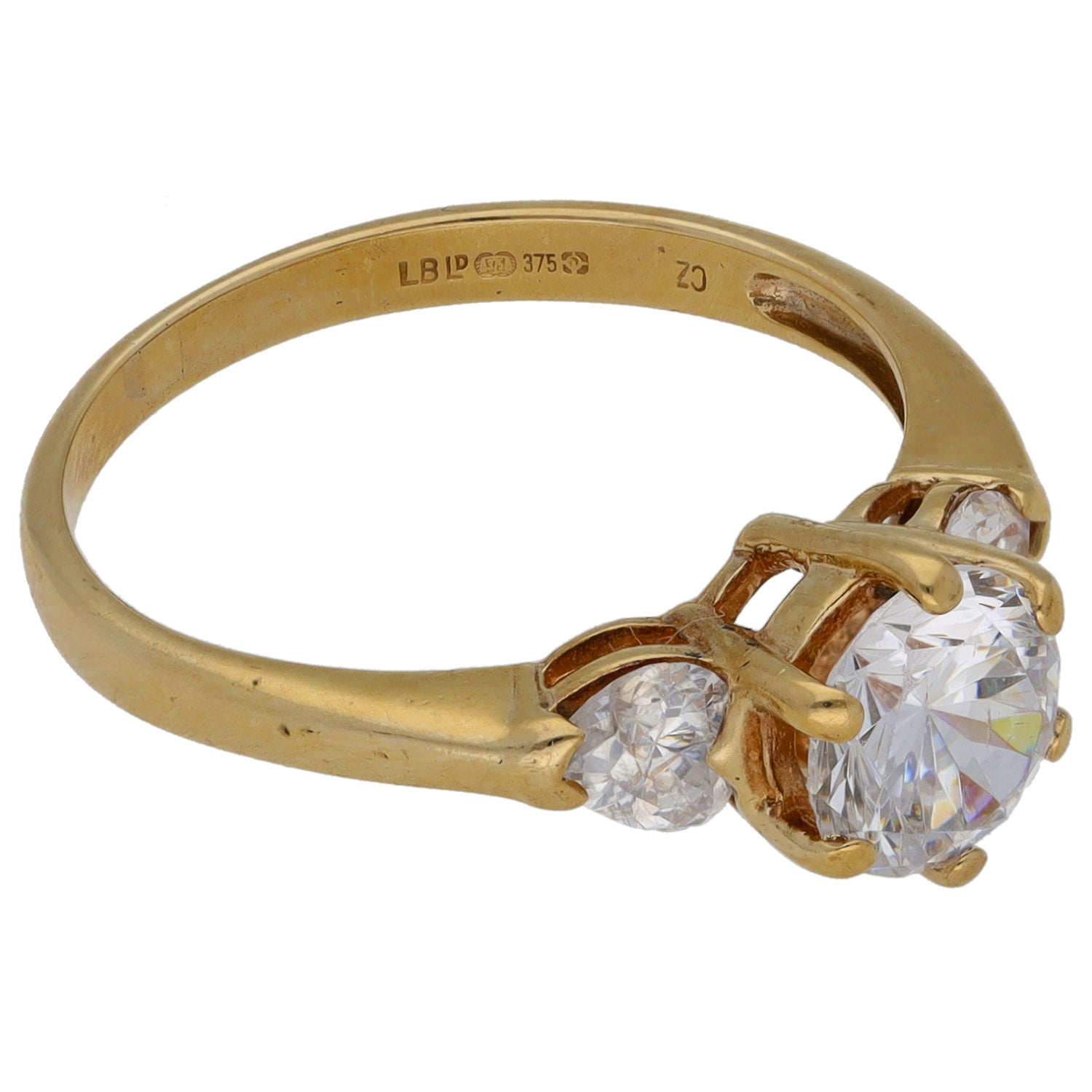 9ct Gold Cubic Zirconia Trilogy Ring Size N