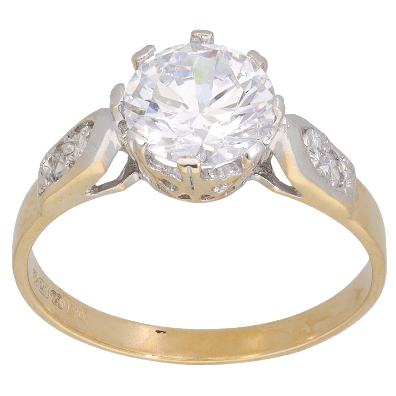 9ct Gold Cubic Zirconia Single Stone Ring with Accent Stones Size N