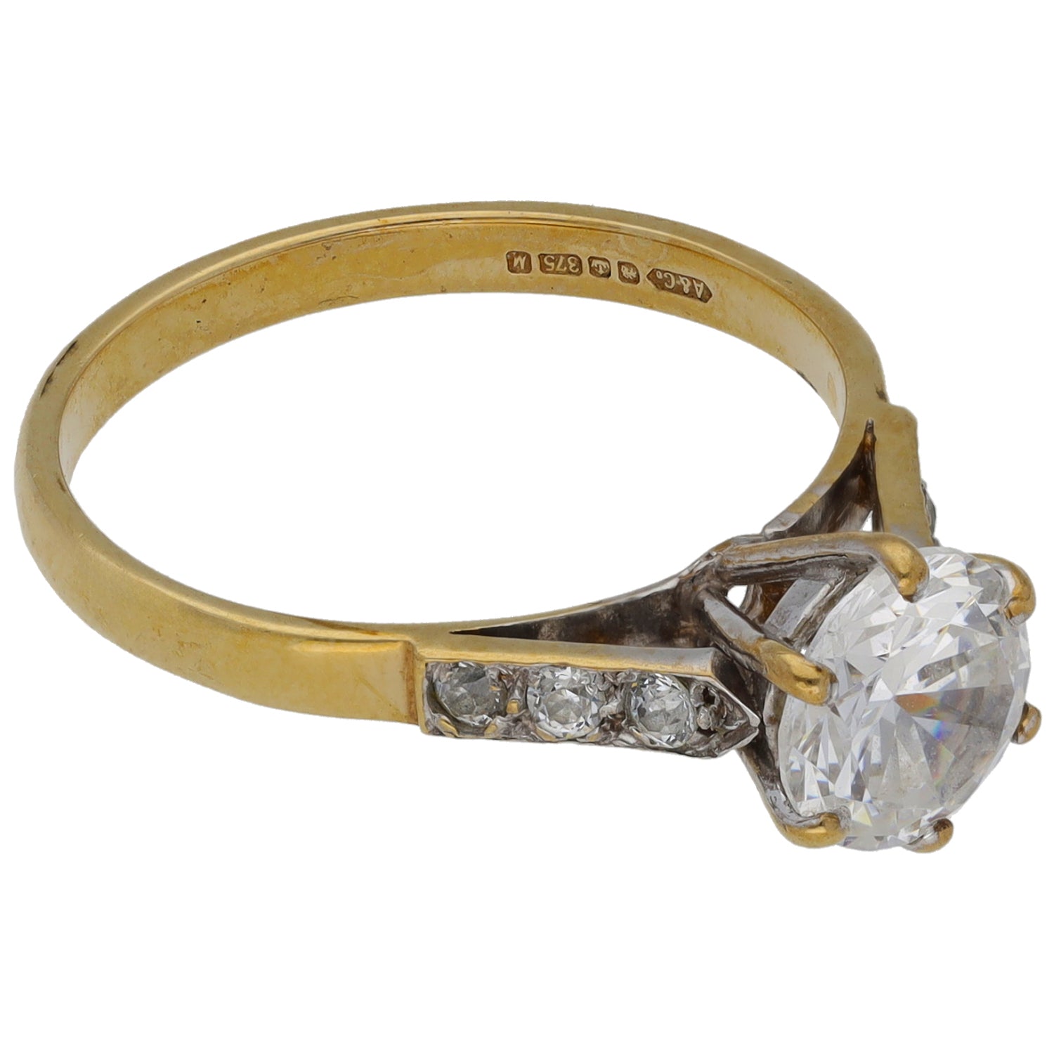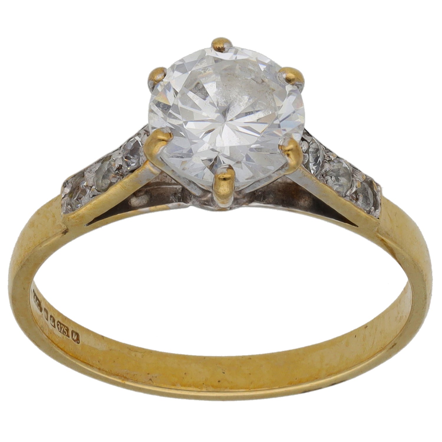 9ct Gold Cubic Zirconia Single Stone Ring with Accent Stones Size O