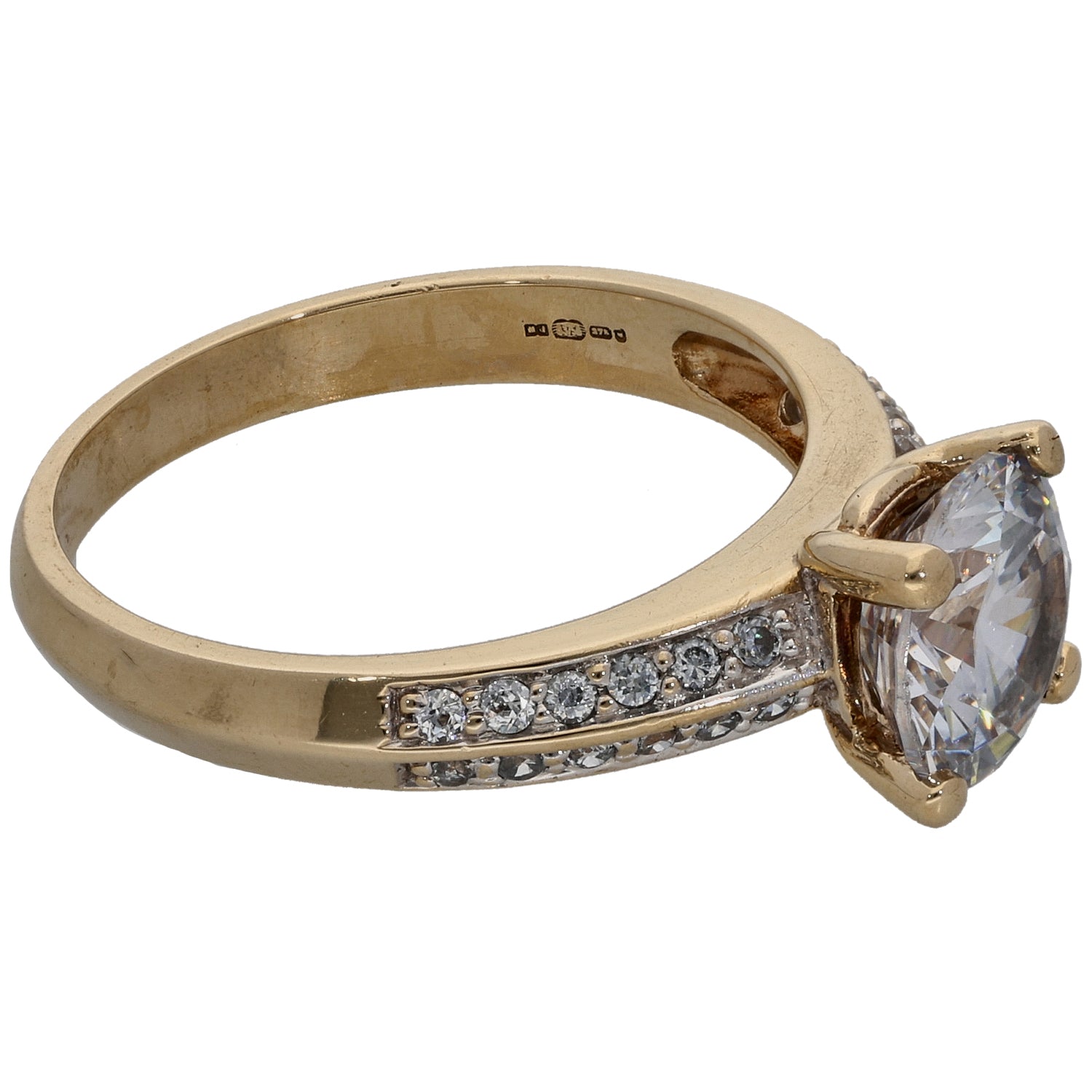 9ct Gold Cubic Zirconia Single Stone Ring with Accent Stones Size O