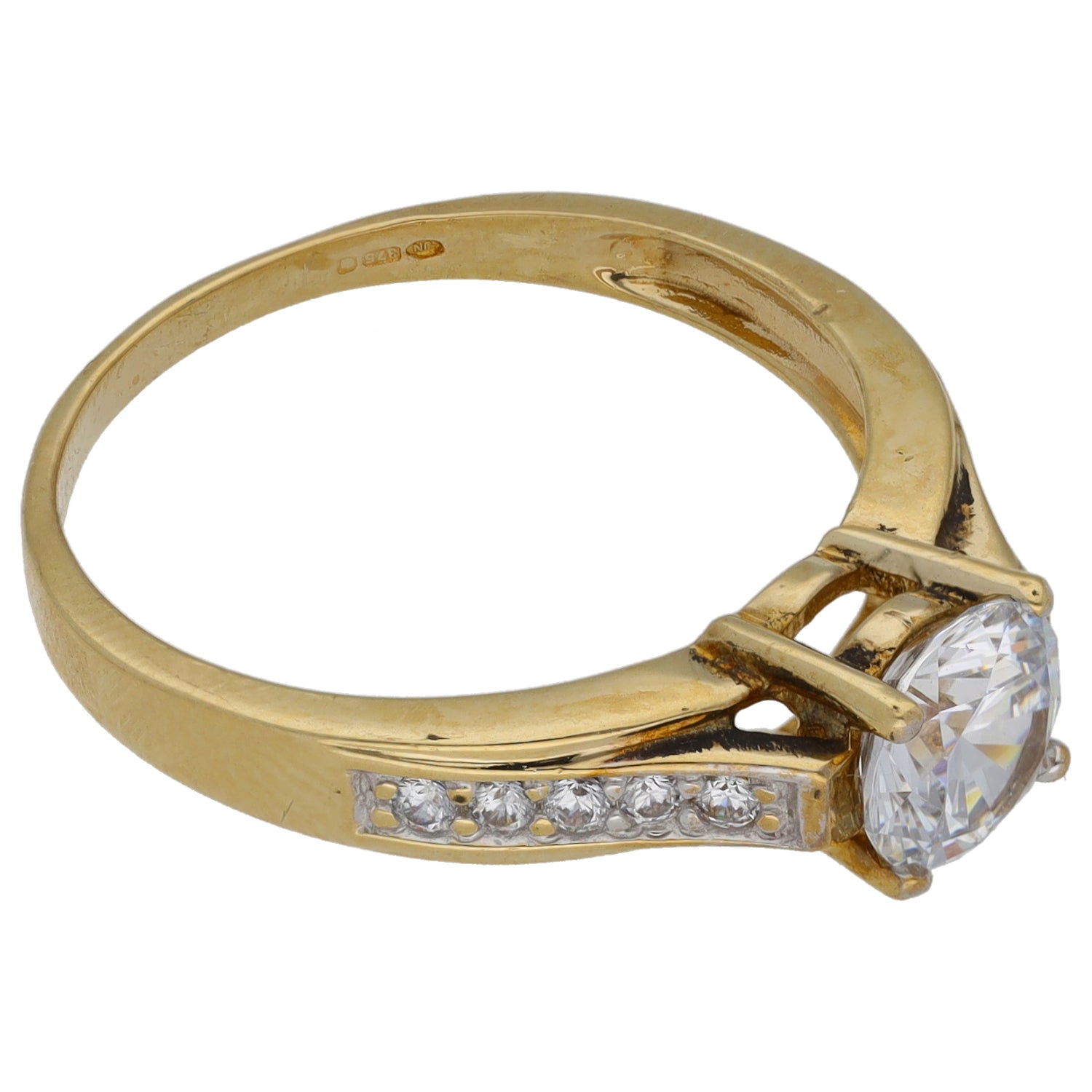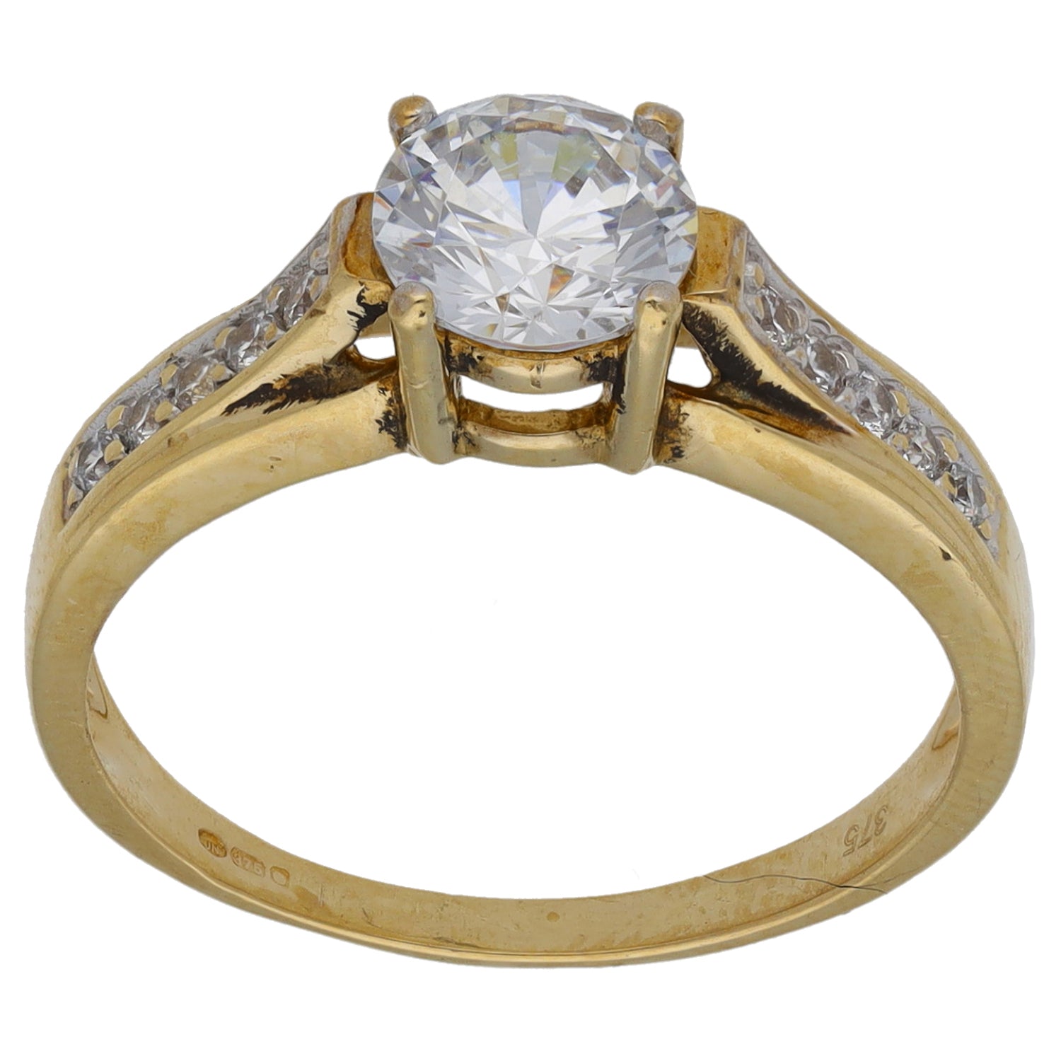 9ct Gold Cubic Zirconia Single Stone Ring with Accent Stones Size P