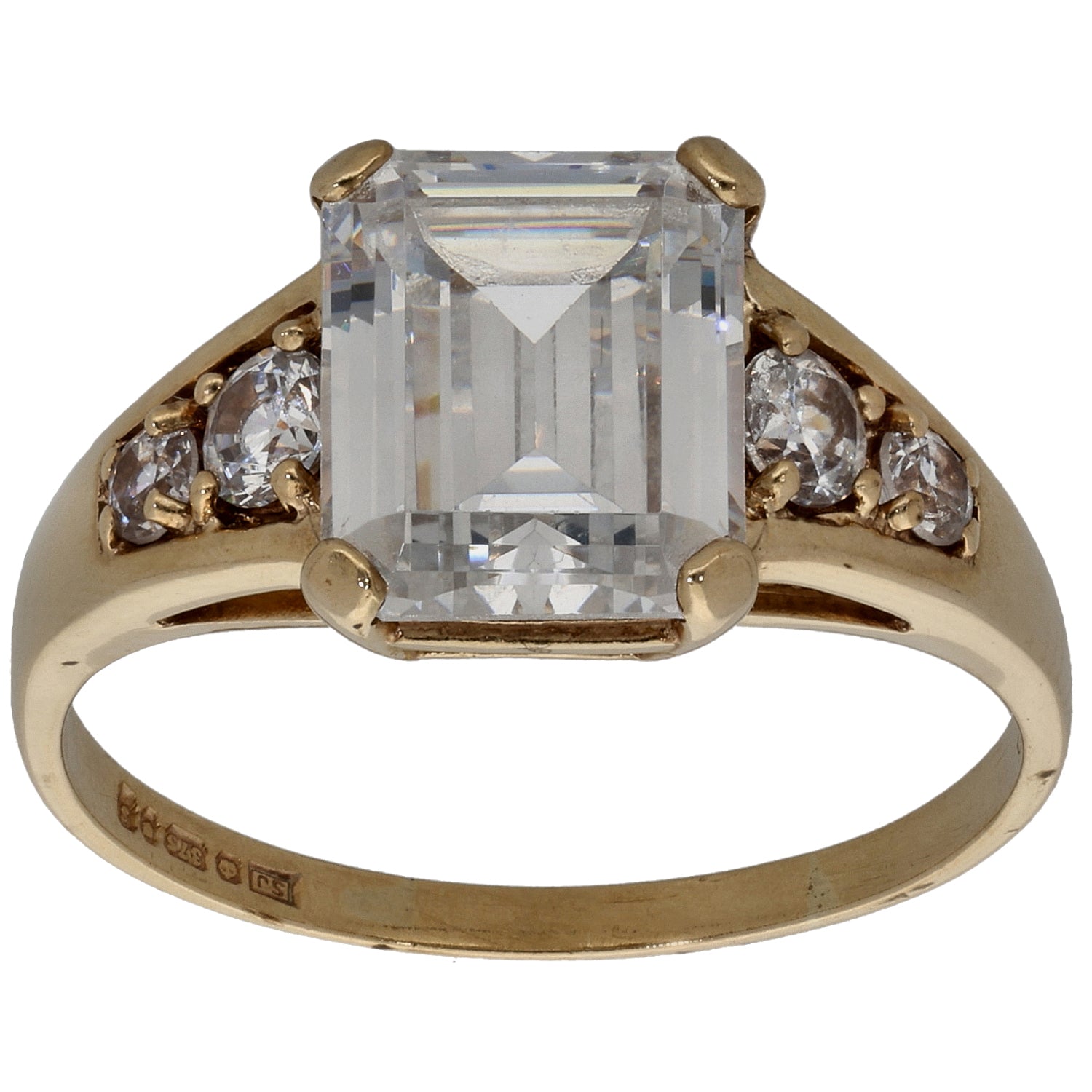 9ct Gold Cubic Zirconia Single Stone Ring with Accent Stones Size Q