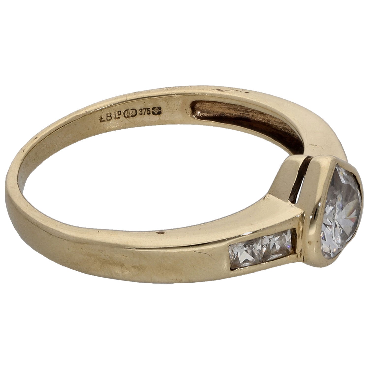 9ct Gold Cubic Zirconia Single Stone Ring With Accents Size N