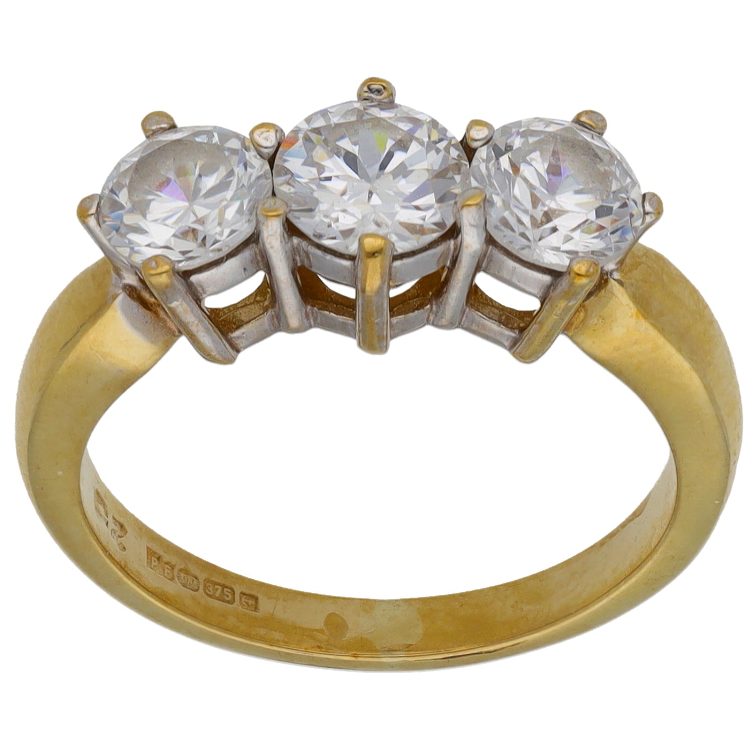 9ct Gold Cubic Zirconia Trilogy Ring Size N