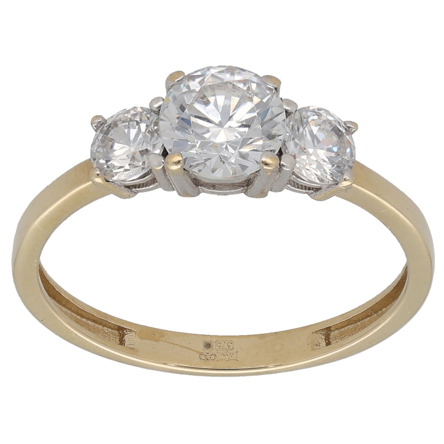 9ct Gold Cubic Zirconia Trilogy Ring Size P