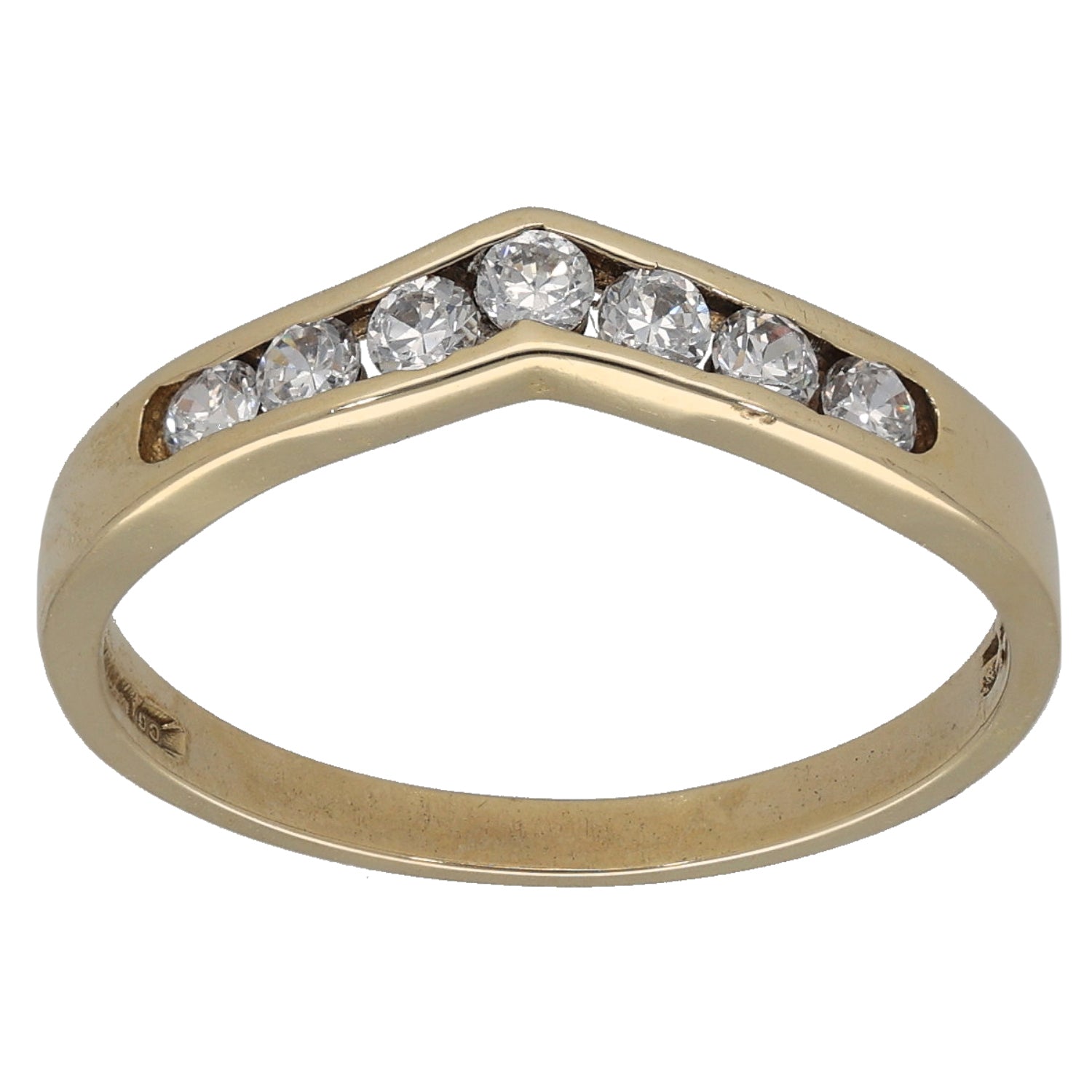9ct Gold Cubic Zirconia Wishbone Ring Size P
