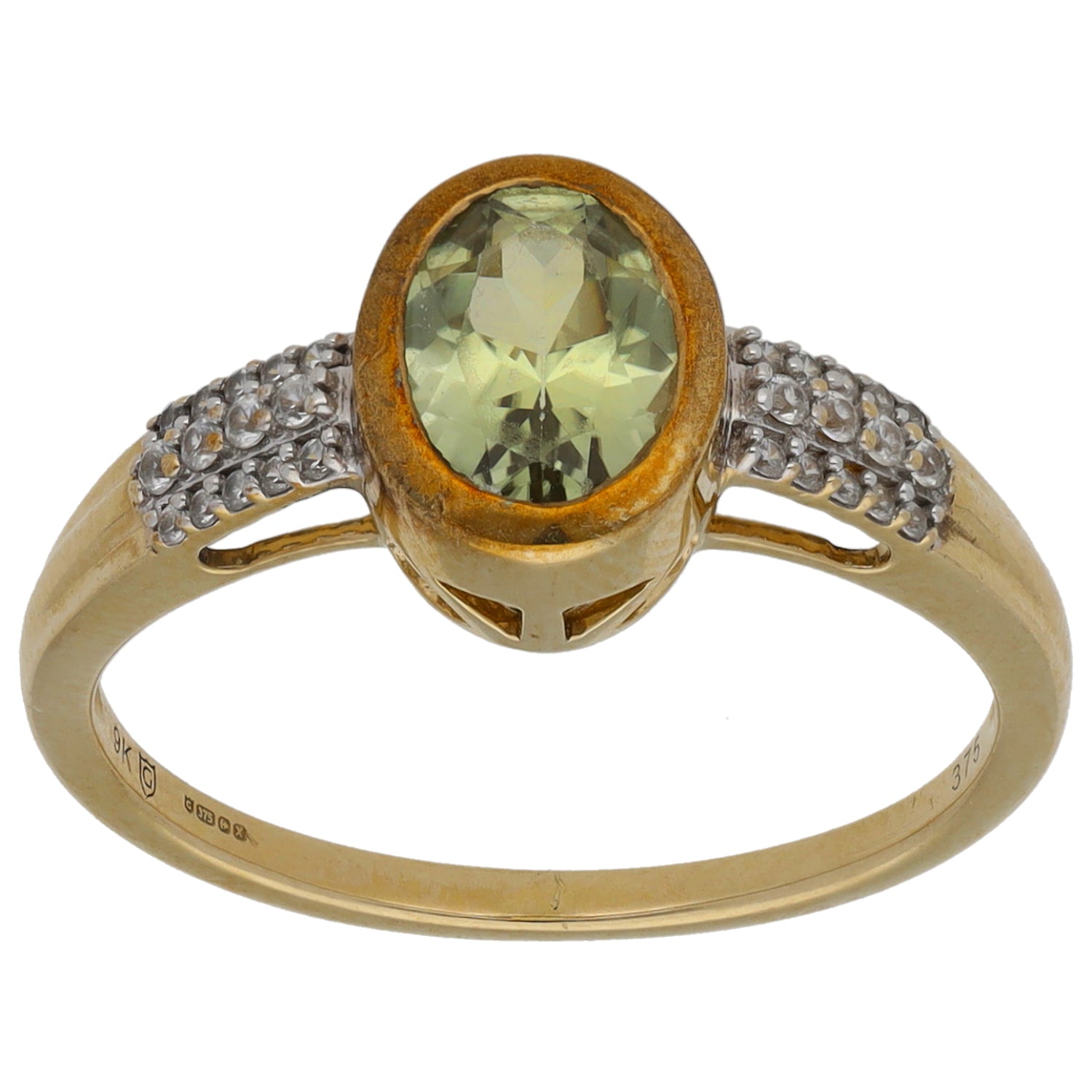 9ct Gold Diaspore & Imitation Gems Single Stone Ring with Accent Stones Size P