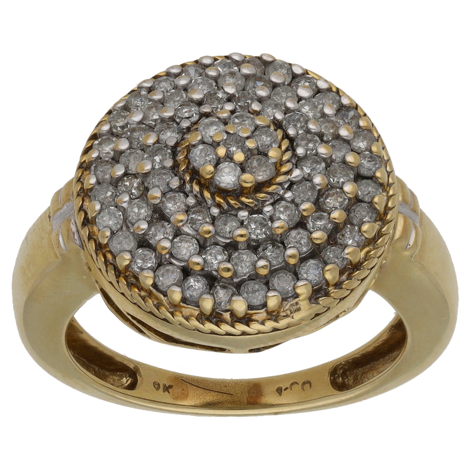 9ct Gold 1.00ct Diamond Dress/Cocktail Ring Size P